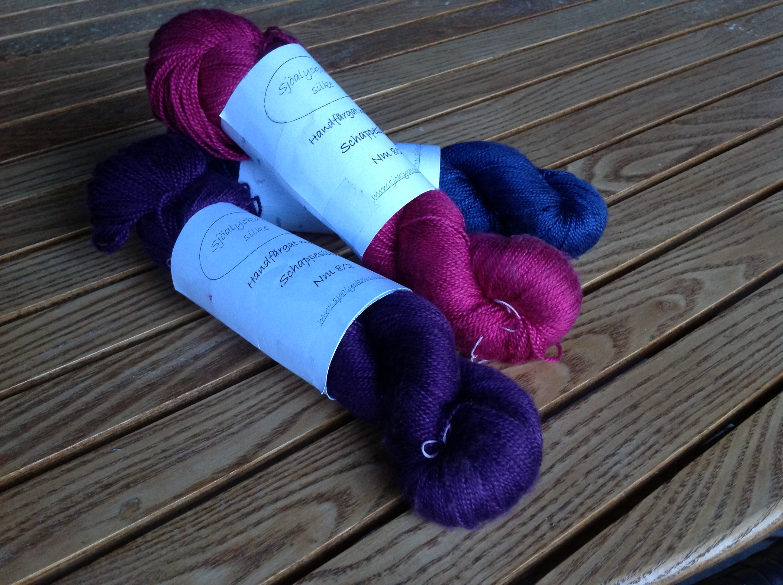 är Hantverksmässan i Båstad sista helgeni juli. Jag var där idag tillsammans med min man. Som vanligt fanns det mycket att titta på och inspireras av – och som vanligt tittade jag inte bara utan handlade också en del: Vad sägs t.ex. om detta vackra handfärgade silkegarn från Sjöalyckans silke?