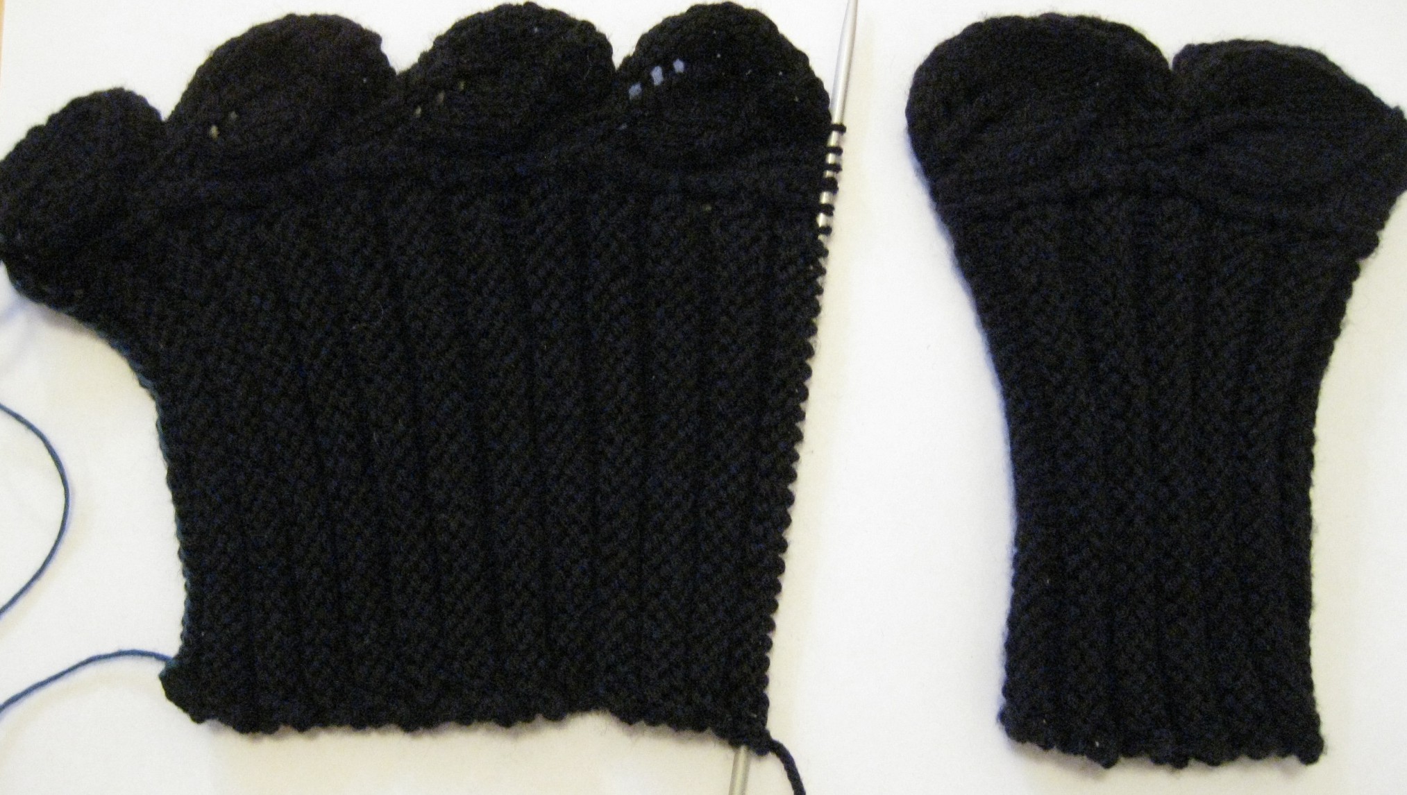 Jag har bara sytt ihop den ena på bilden för att visa vilken skillnad det faktiskt blir när man blockar spetsstickat.