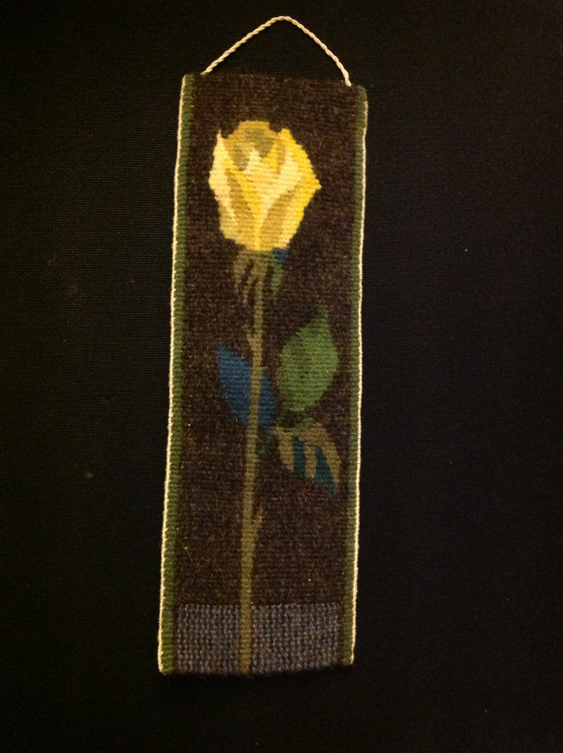 Den kom från min kära mor. Min syster har tidigare sytt ett fint pennfodral av en flamskväv hon köpt för en tia på en loppis, så när mor hittade denna ros i gömmorna tänkte hon att jag kanske ville göra något fint av den. Den är otroligt välgjord så jag ger mig inte på den förrän jag tänkt igenom saken ordentligt. Kanske blir det en väska av något slag, i vadmal eller linnetyg, i svart, grått eller mörkgrönt …