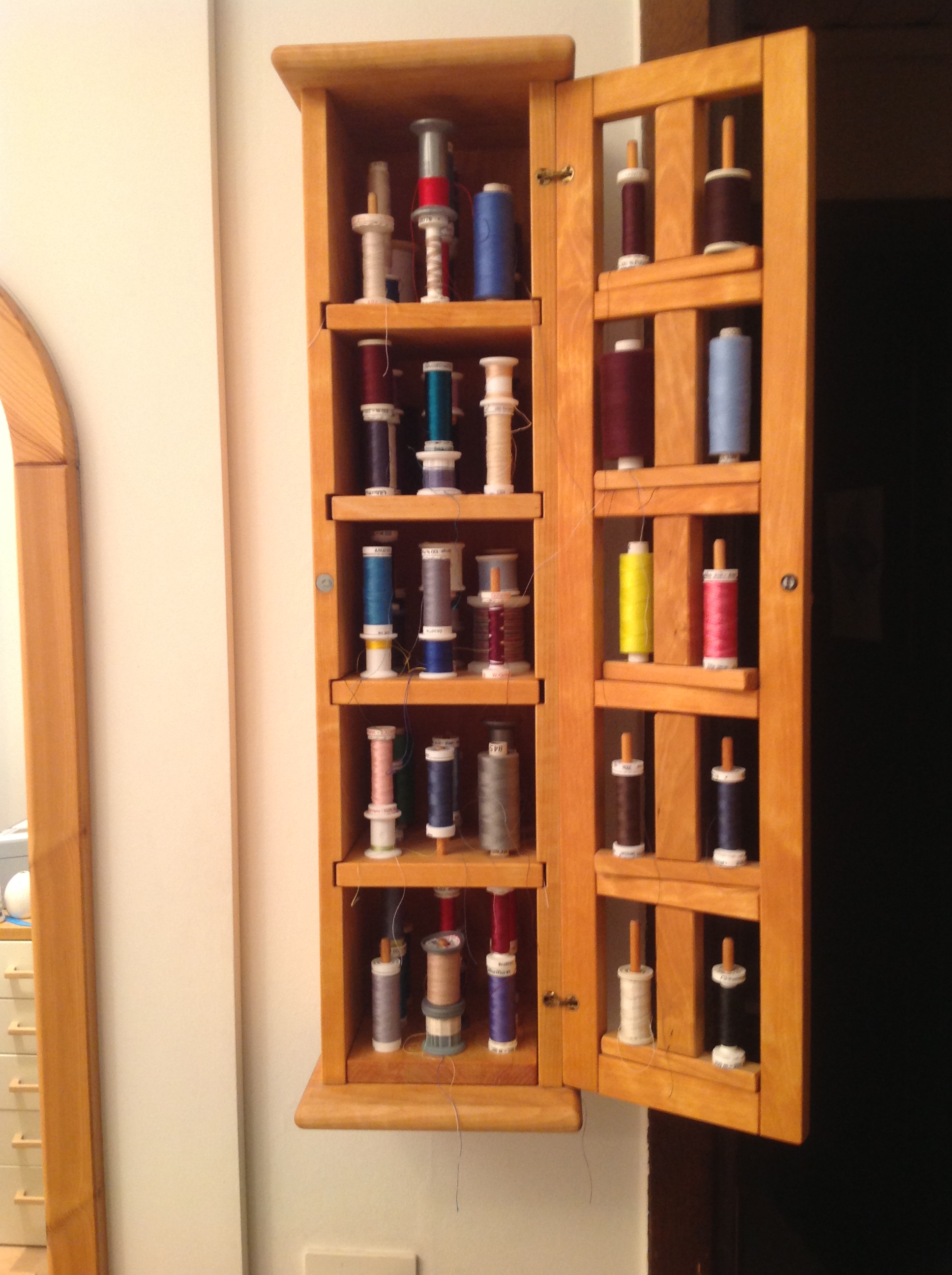 IMG_0365 IMG_0364Spolstället fick jag i julklapp av en av döttrarna för många år sedan. Hon hade gjort det hemma hos morfar. IMG_0369 IMG_0368  Trådrulleskåpet har maken köpt åt mig på en hantverksmässa, liksom detta fina syskrin:2013-11-12 21.25.11Vad som finns i det visar jag en annan gång …