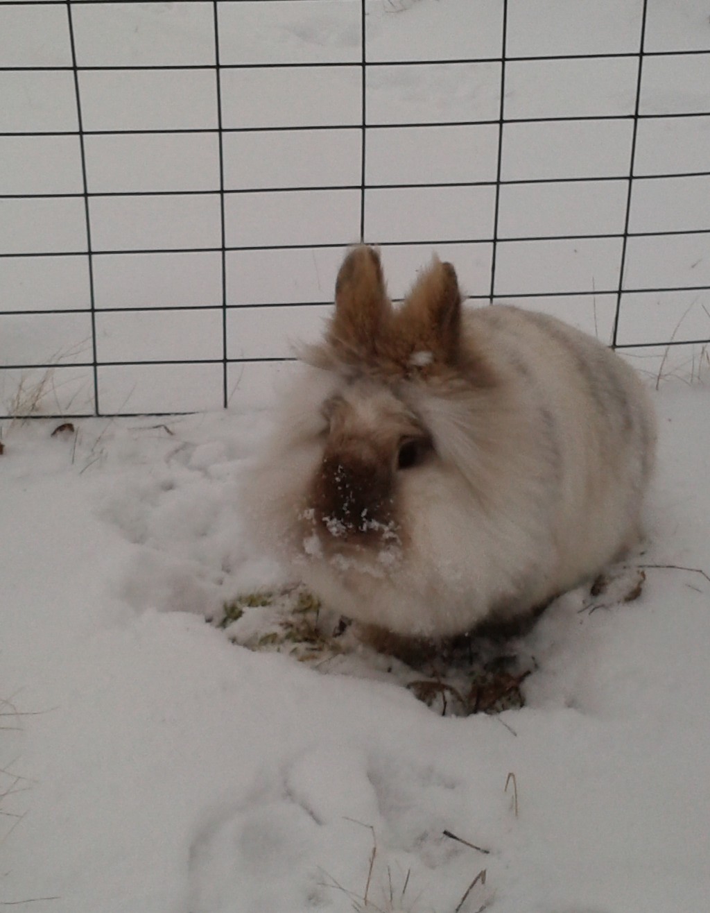 Det såg så roligt ut när jag släppte ut kaninerna i den snöiga hagen. Men försök fånga en skuttande kanin på bild … Kummin satt stilla en liten stund, men å andra sidan gör ju hans färg att han ändå inte syns så bra på bilden.