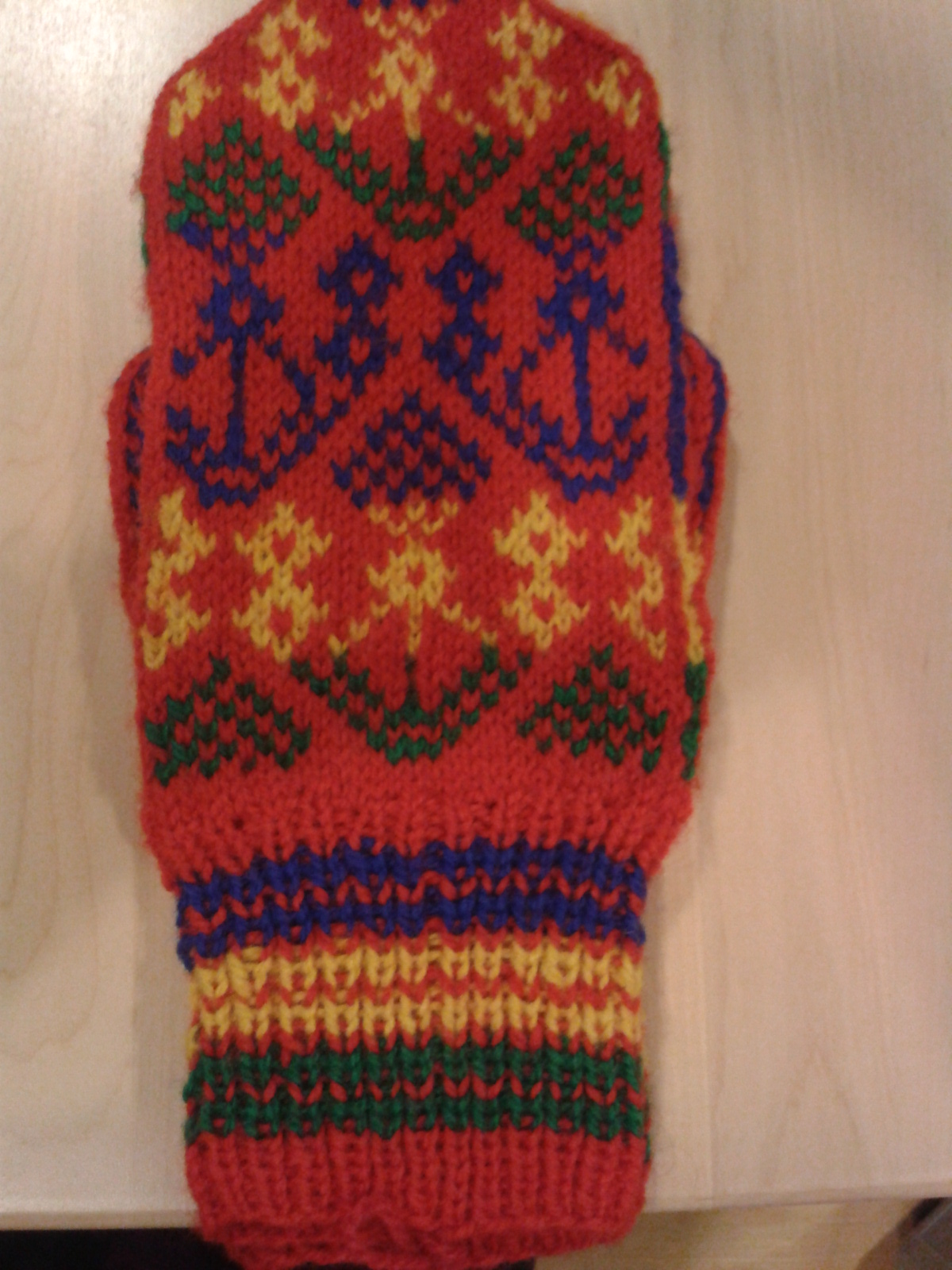 Nu ska du få höra: Marita berättade att samma mönster finns på folkdräktsvantar hos nordsamer! Så här ser de vantarna ut:
