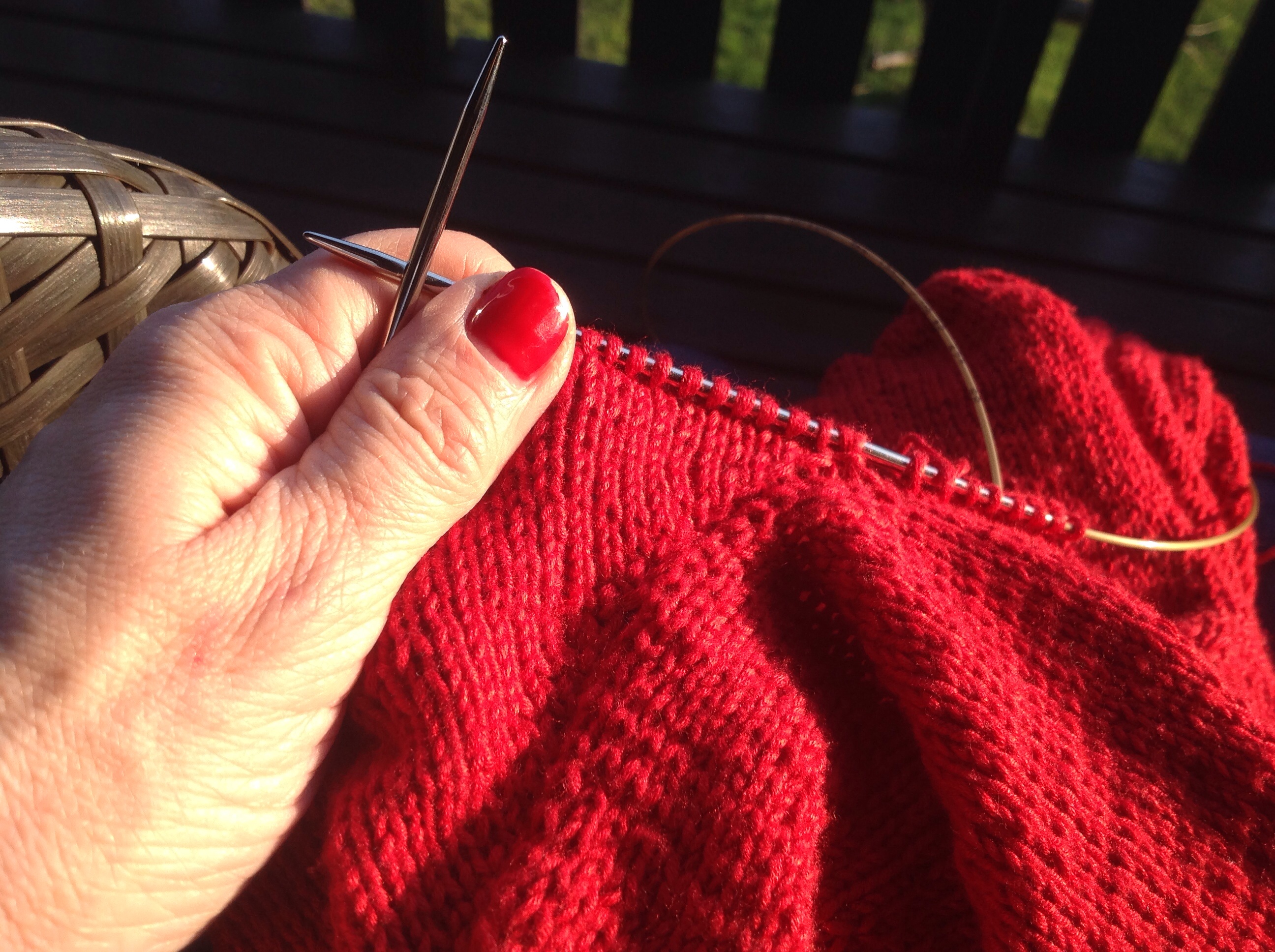 Jag hade tänkt fel när det gällde omkretsen. Så efter en skön stund med stickning på balkongen – vi har haft 18 grader här idag! –