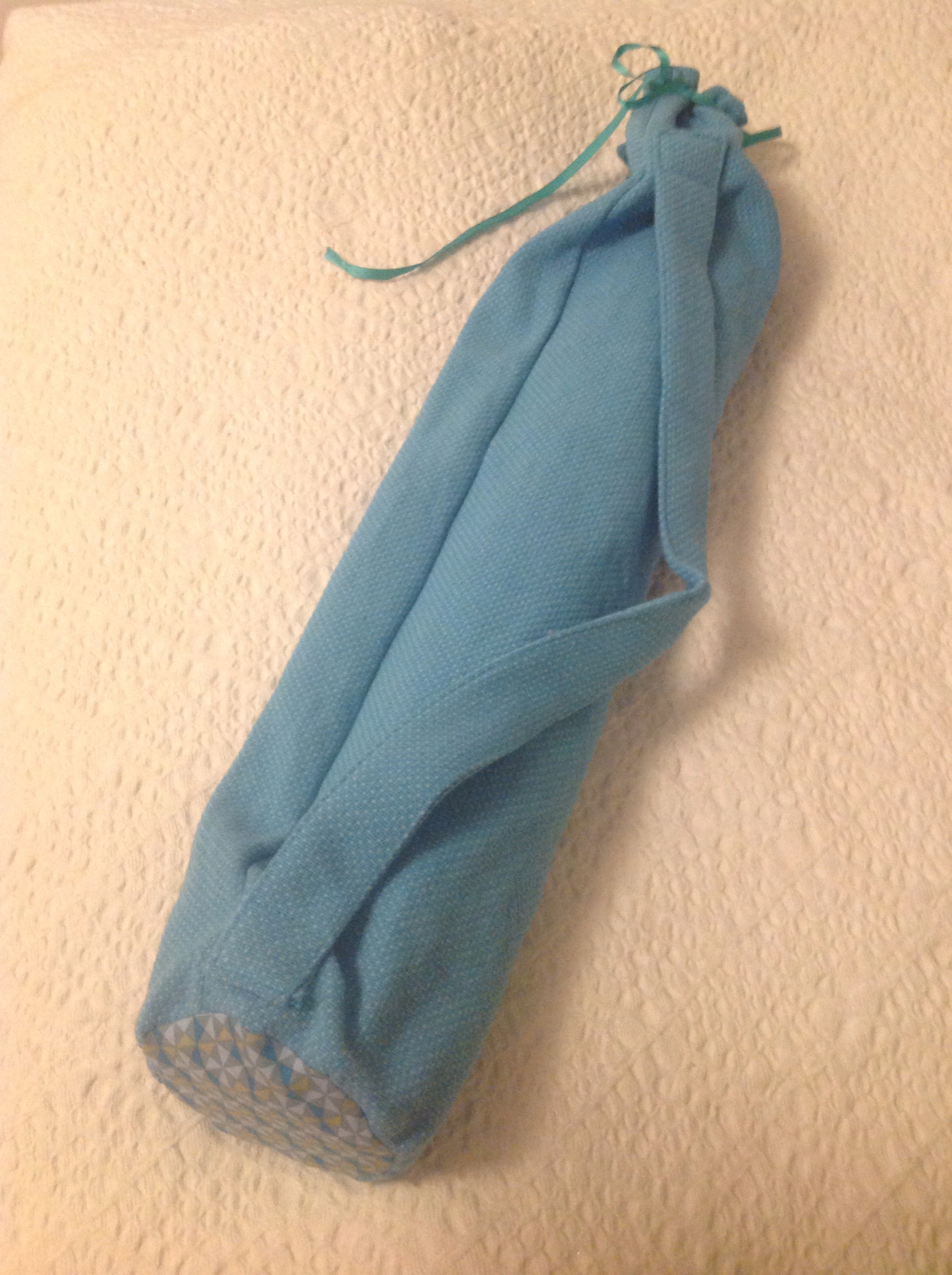 Jag fick en yogamatta av döttrarna i julklapp. De upplyste mig om att det finns fodral att köpa till, men de tänkte att jag nog ville sy mig ett eget fodral att förvara mattan i. Och det ville jag. Alternativen har varit flera, alltifrån att bara använda ett avklippt jeansben till att sy och brodera ett fodral. Jag hittade till och med ett motiv jag skulle vilja brodera, på framsidan av min idésamlingsbok. (Det är i själva verket en bit omslagspapper som jag stoppat i plastfickan som utgör framsidan på boken.)