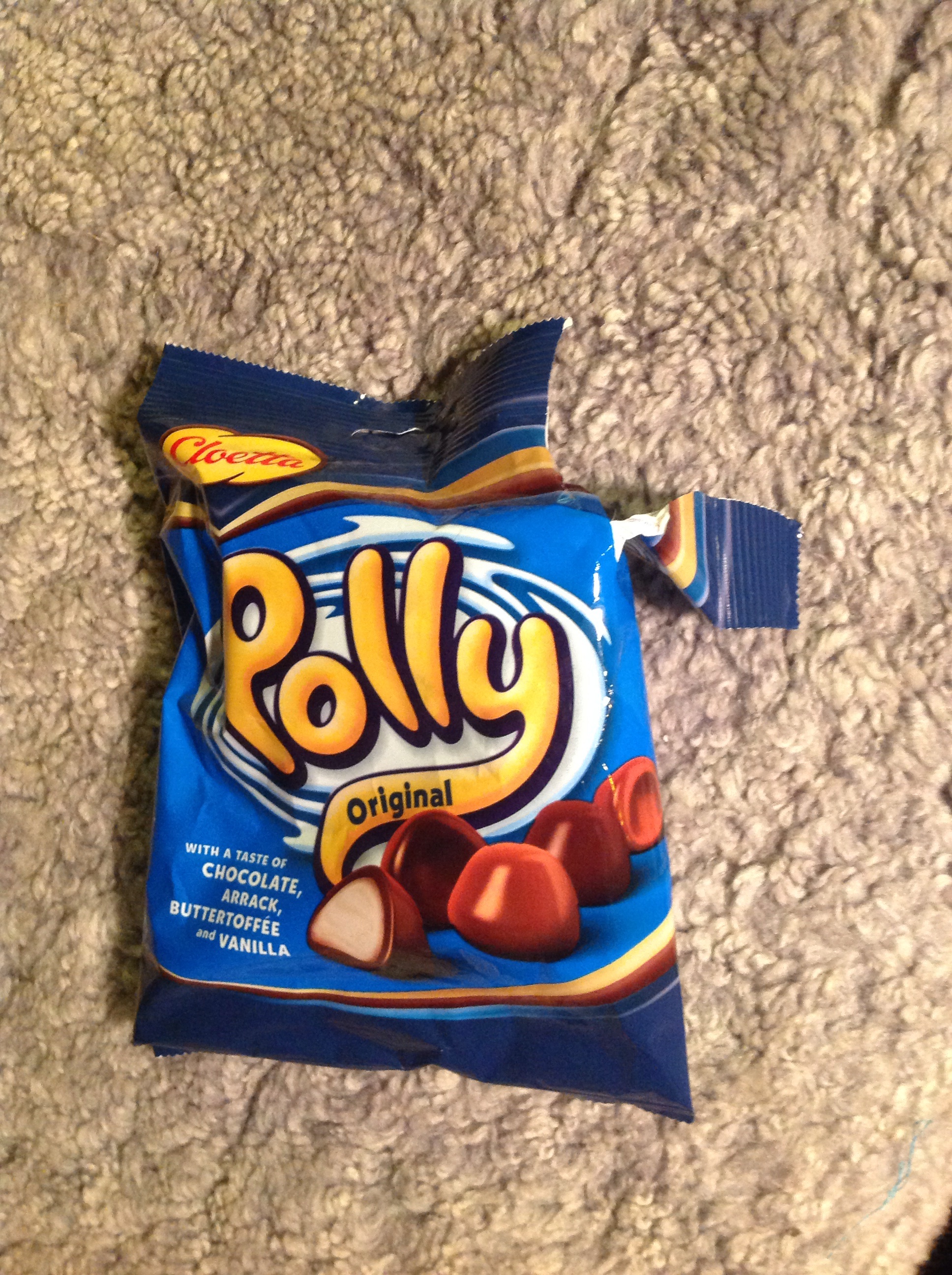 Den här har jag tömt på två kvällar – utan någon hjälp alls. Det är inte så att jag vantrivs med mitt eget sällskap, men det är lättare att hänfalla åt frosseri när ingen ser en. När tjejerna bodde hemma var jag mer disciplinerad och åt bara godis på helgerna. Nu har maken varit på konferens och det har varit fri tillgång till godisförrådet (han är godisförsäljare och har ett förråd av smakprover i bastun). Jag var bara tvungen att prova om Polly smakade lika gott som det brukar. Och det gjorde det. Nu när jag byggt på mitt Polly-fluff var jag bara tvungen att testa om min Emelie fortfarande passar. Det skulle vara lite jobbigt om den blivit för liten innan den ens är klar.