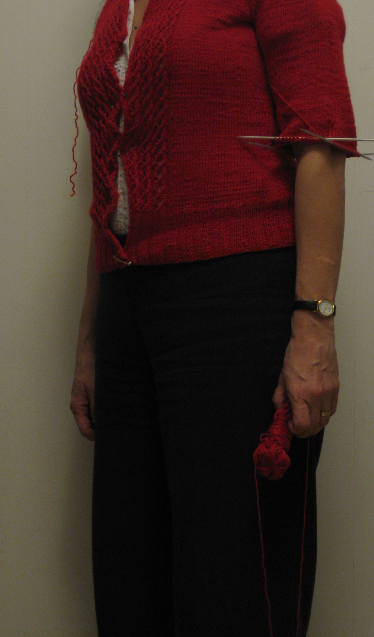 Jodå, ingen fara på taket, än så länge … Däremot upptäckte jag att det inte var alltigenom lyckat att gå över från att sticka med magic loop till strumpstickor mitt på ärmen. Det var ett experiment för att se vilket som gick fortast och kändes bekvämast. Det var att sticka med strumpstickorna, men eftersom resultatet inte blev riktigt lika ”spänstigt” går jag nog tillbaka till magic loop med min långa rundsticka. Det syntes dessutom en liten rand i skarvarna mellan strumpstickorna, vilket jag inte kan minnas att det gjorde när jag exempelvis stickade strumporna i julas. Kan det bero på garnet? Har du varit med om det någon gång när du stickat med strumpstickor? Och har du märkt någon skillnad mellan att sticka med magic loop och strumpstickor? Vilken skillnad i så fall?