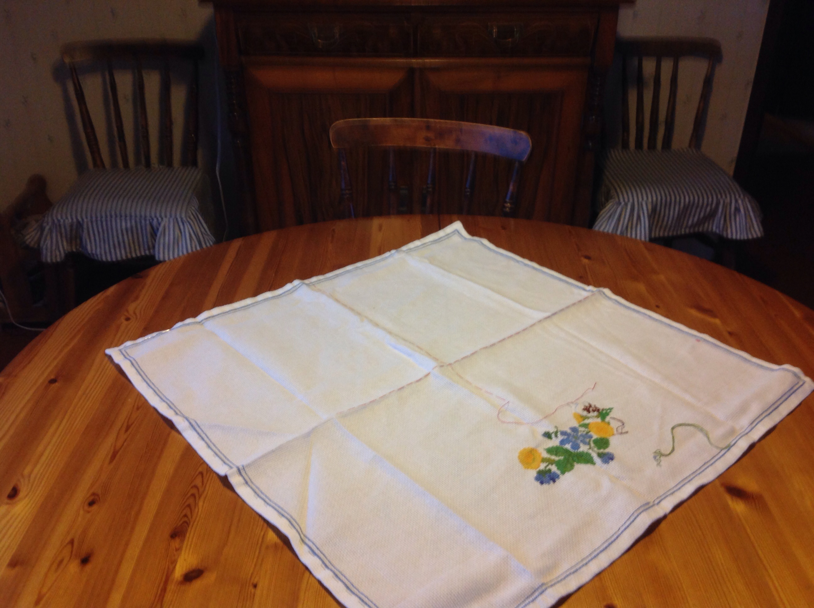 Jag är glad för att koftan blev klar på utlovad dag, att den passar och vet ni vad – i utbyte mot att jag stickade klart koftan har min mor lovat att brodera färdigt min vårduk …
