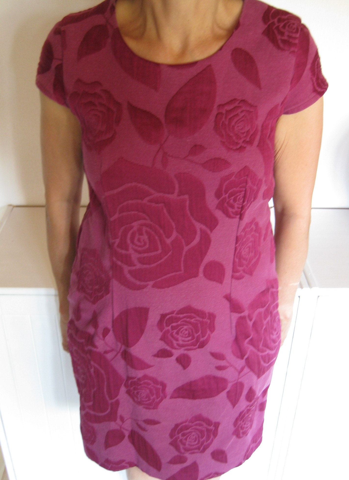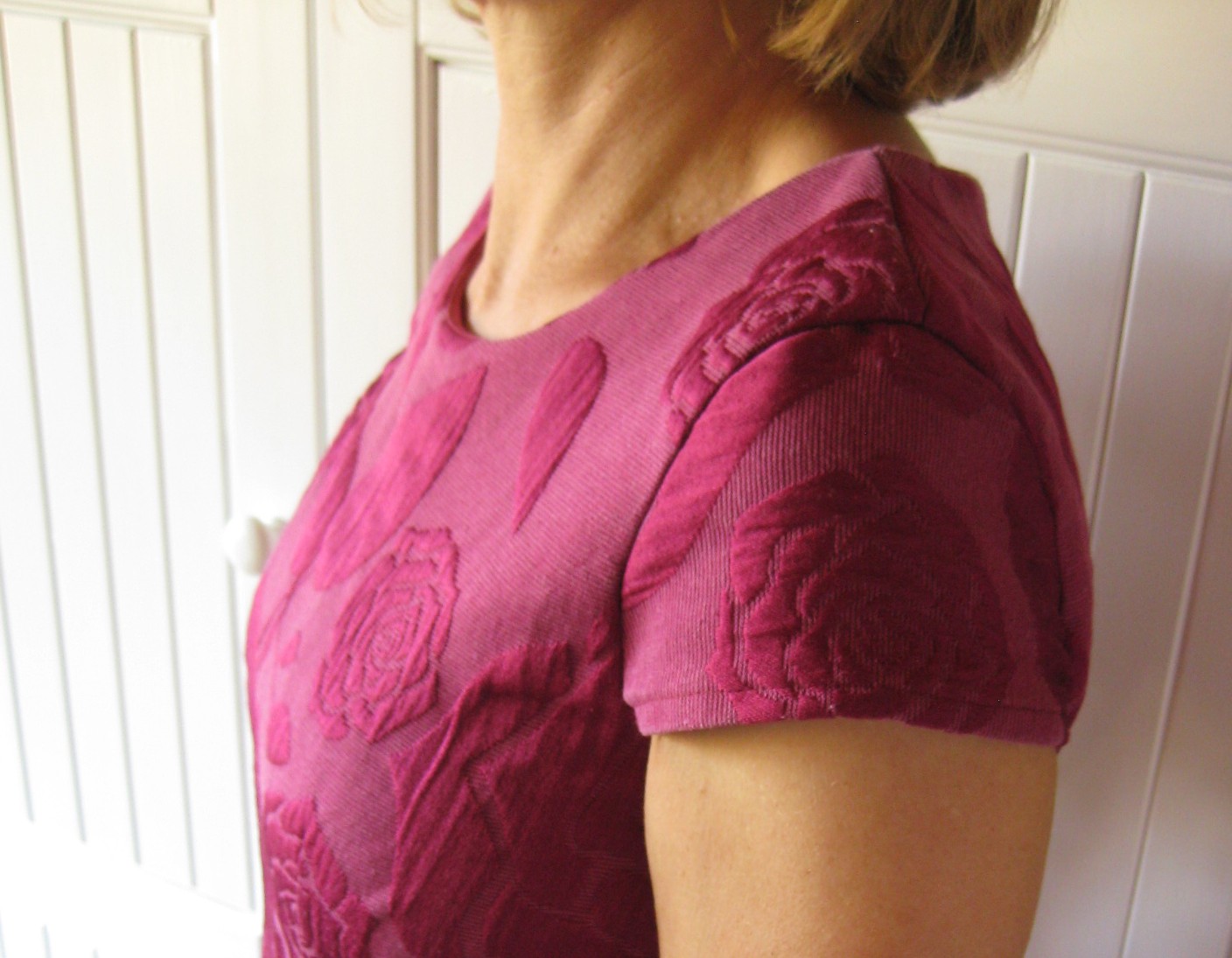 IMG_1309kommer att räcka till de detaljer jag vill ha. Livet ska vara figursytt på något sätt, och ärmarna ska vara små, så här små:IMG_1312Den här klänningen sydde jag häromåret. Tyget är egentligen ett möbeltyg och det var det sista som fanns så jag fick pussla en del för att få det att räcka, därav den lilla ärmen. Men jag kom på då att jag gillar små ärmar – så sådana får det bli.IMG_1314Nästa steg blir att ta ställning till halsringning och eventuella dekorationer. Idéer och förslag, någon?