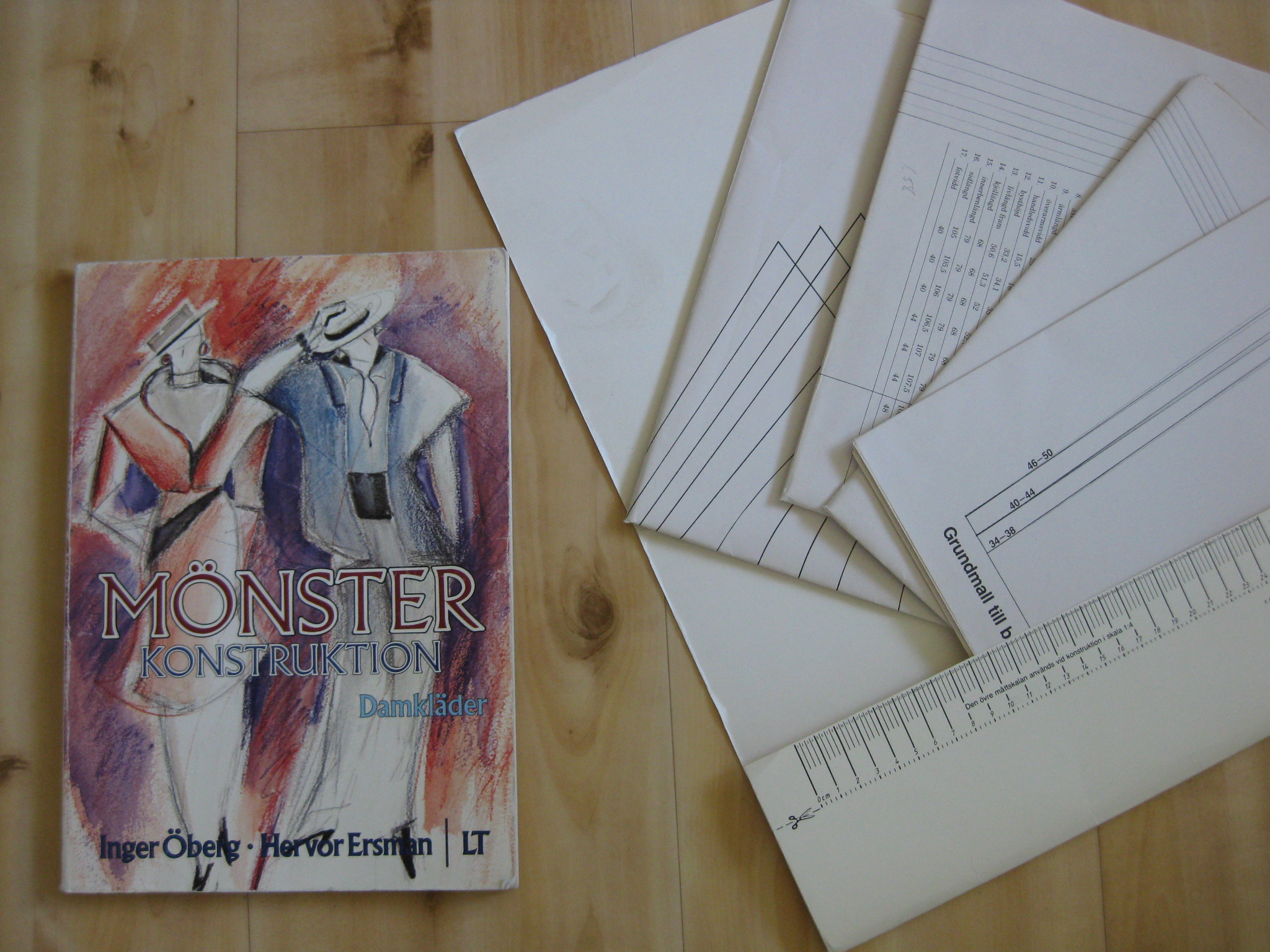 Jag använder mig av grundmönstren som tillhör boken Mönsterkonstruktion av Inger Öberg och Hervor Ersman. Inger  hade jag som lärare när jag gick min textillärarutbilning. Jag har för mig att hon och Hervor började skriva boken då. Vi fick testa deras instruktioner. Ska man bara skaffa en mönsterkonstruktionsbok så kan jag rekommendera denna, för den innehåller alla grunder och en del fördjupningar OCH som sagt grundmönster i full storlek. IMG_1465Det här är ett experiment alltså, för att se om jag kan få till en ärm som passar ärmhålet. Får se hur det blir … återkommer med resultatanalys längre fram.