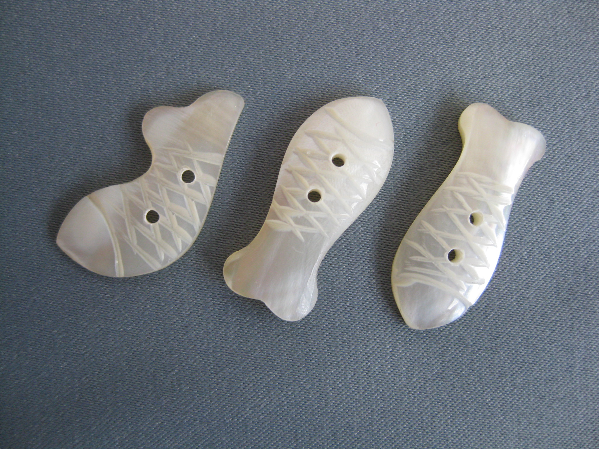 En sommardag för några år sedan gjorde vi en utflykt till Torekov. Där såg jag de här sill-knapparna i pärlemo i en presentaffär, kunde inte motstå dem utan köpte dem för framtida behov. De har legat i en glasburk och ibland när blicken fallit på den där burken har jag väl funderat lite på vad jag skulle kunna använda dem till. Det har mest lutat åt att jag skulle sticka en tröja med sprund som skulle knäppas med sillarna, kanske i grått ullgarn i en modell inspirerad av fiskartröjor.