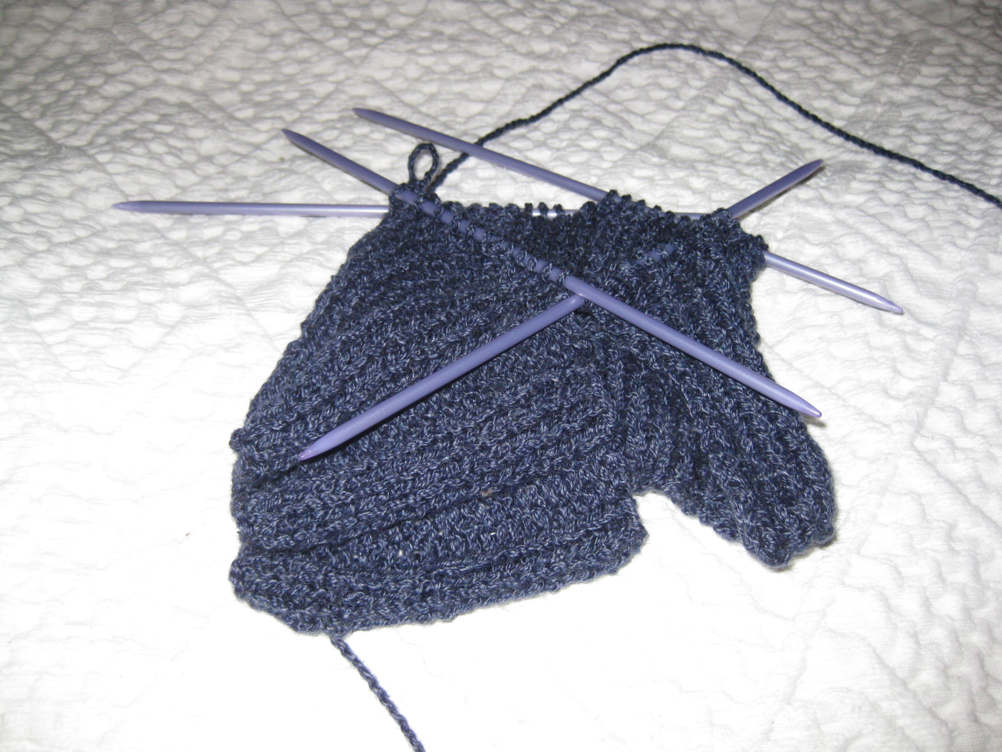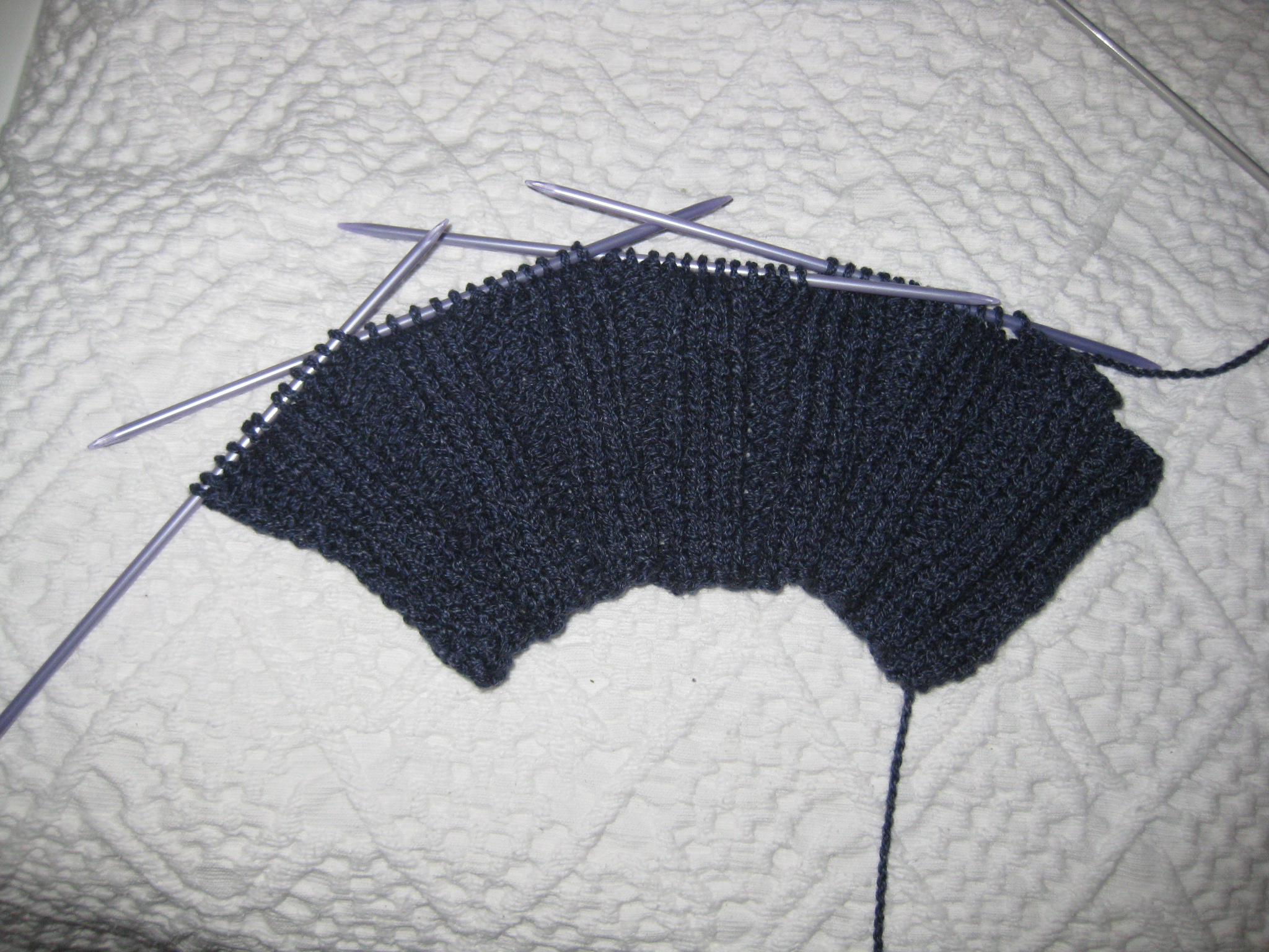 Först stickar man resår, 4 räta, 4 aviga en bit upp. Sedan maskar man av i början av varvet …