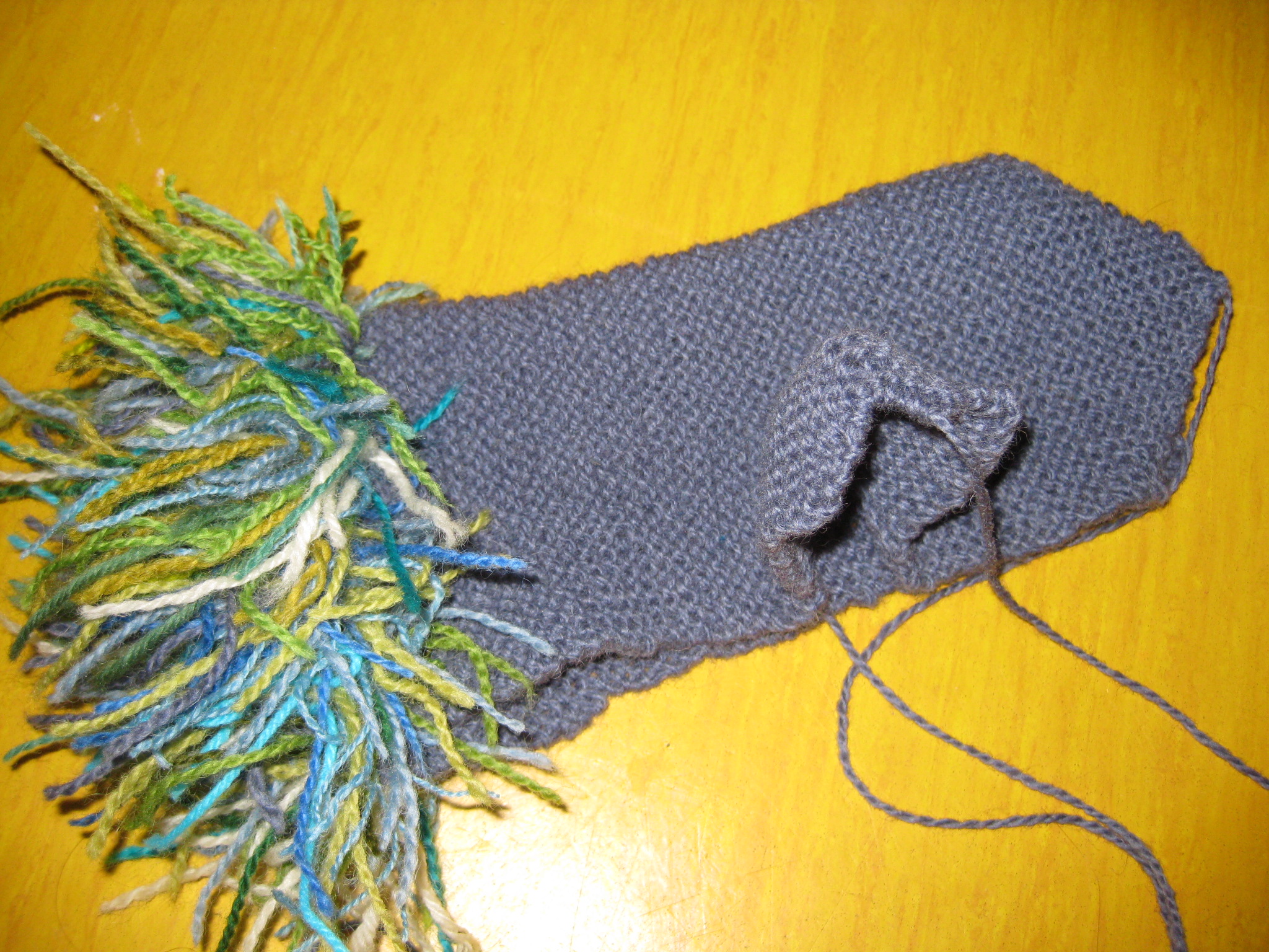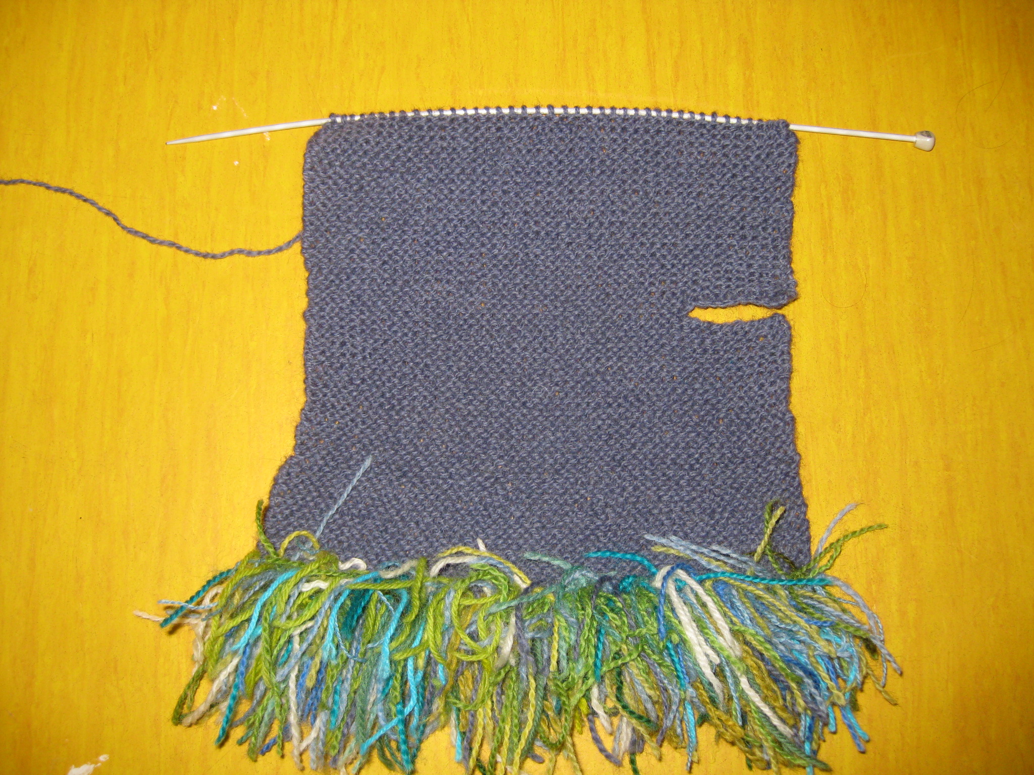 Det blev en fortsättning på mitt experiment med de små garnbitar som blev över när jag virkade mormorsrutor under bilresan förra helgen.