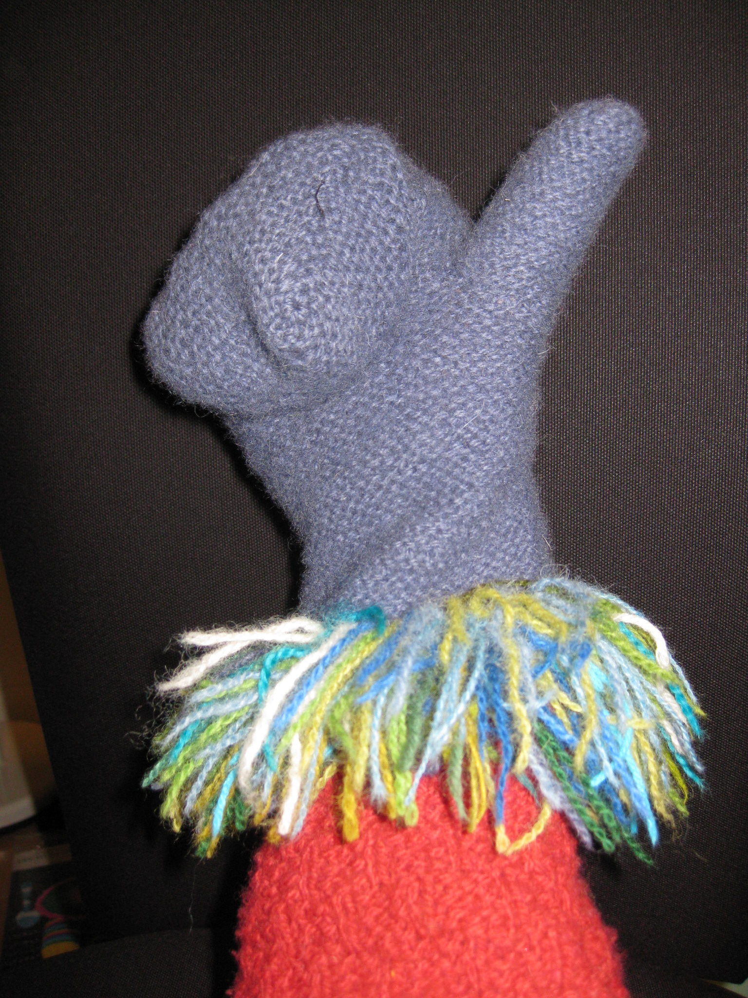 Vanten känns riktigt skön så jag vill sticka en till, men nu får jag vänta tills jag virkat fler mormorsrutor och fått fler små garnbitar att sticka pälskaten med. Jag gjorde lite anteckningar under tiden jag stickade med tanke på att det kan dröja ett tag innan jag fått ihop garnrester till en pälskant till. Fungerar det att sticka efter anteckningarna återkommer jag med en beskrivning. Tills dess kan ju du börja spara resterna av dina garnrestarbete, du också.