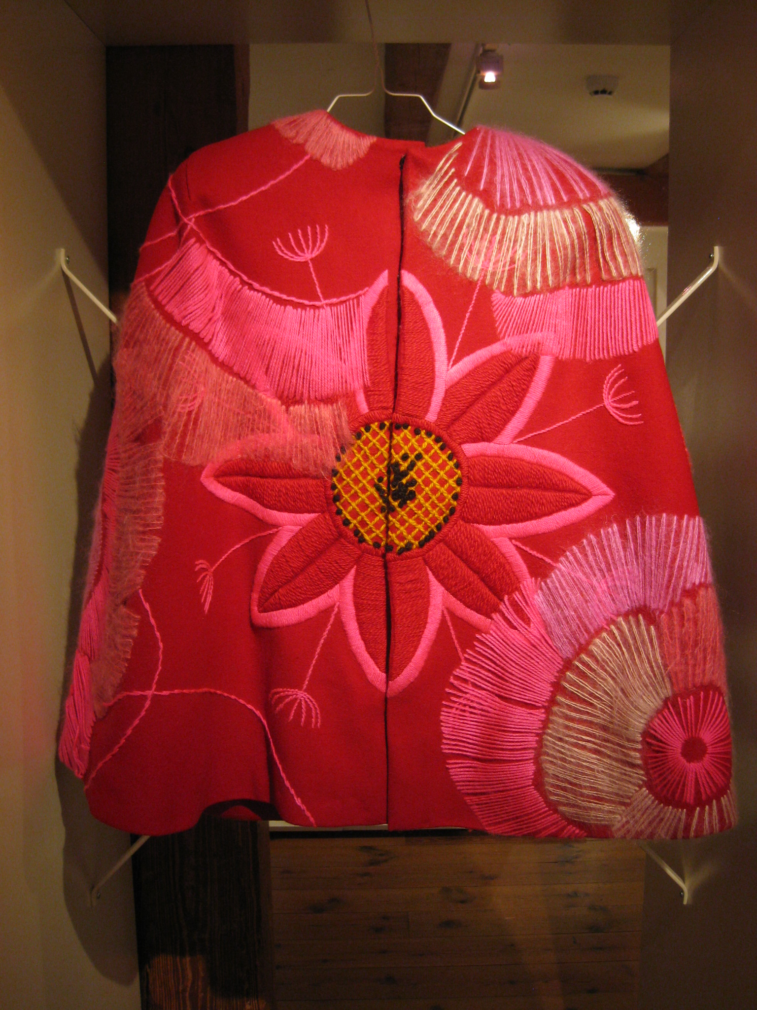 Den här capen tyckte jag var häftig med sina uppförstorade folkloristiska broderade blommor. Den är gjord av Fiffi Wilton som tog examen på Beckmans Designhögskola förra året.