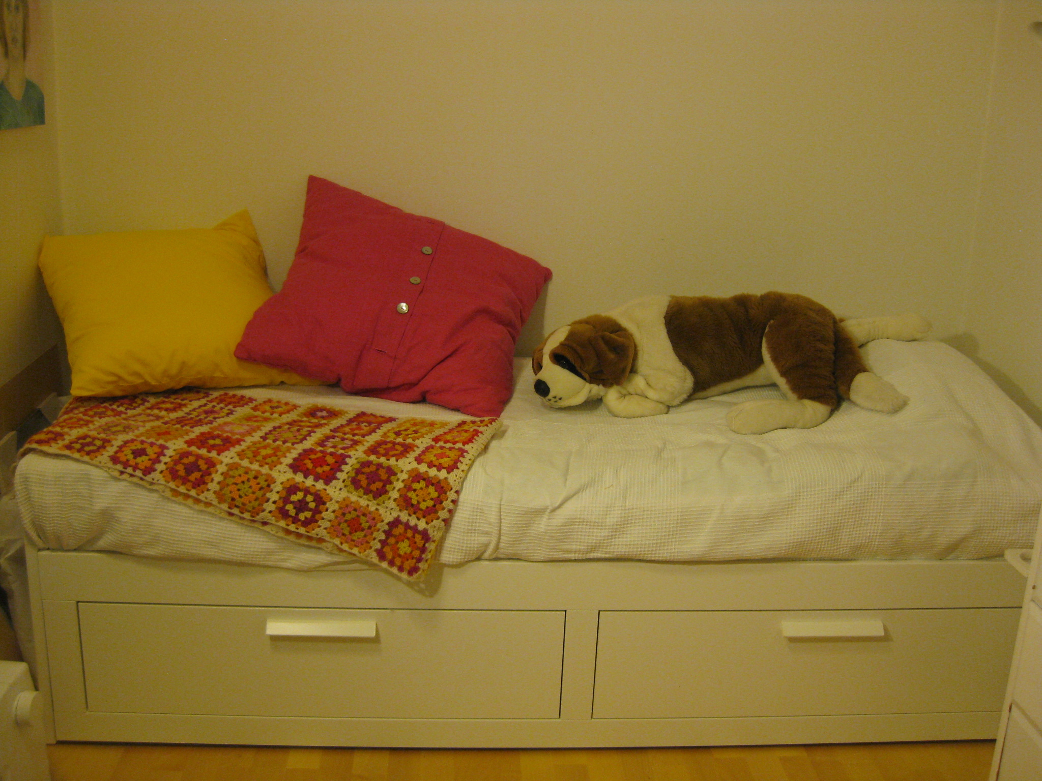 Jag får nog göra en toile först, vore ledsamt om jag klipper fel i de här tygerna. Funderar på att göra verklighet av mina funderingar på ett tillklippningsbord i mitt syrum. Det skulle kännas bättre att stå vid en bordsskiva ovanför den här sängen och klippa till, istället för att ligga på knä på golvet.