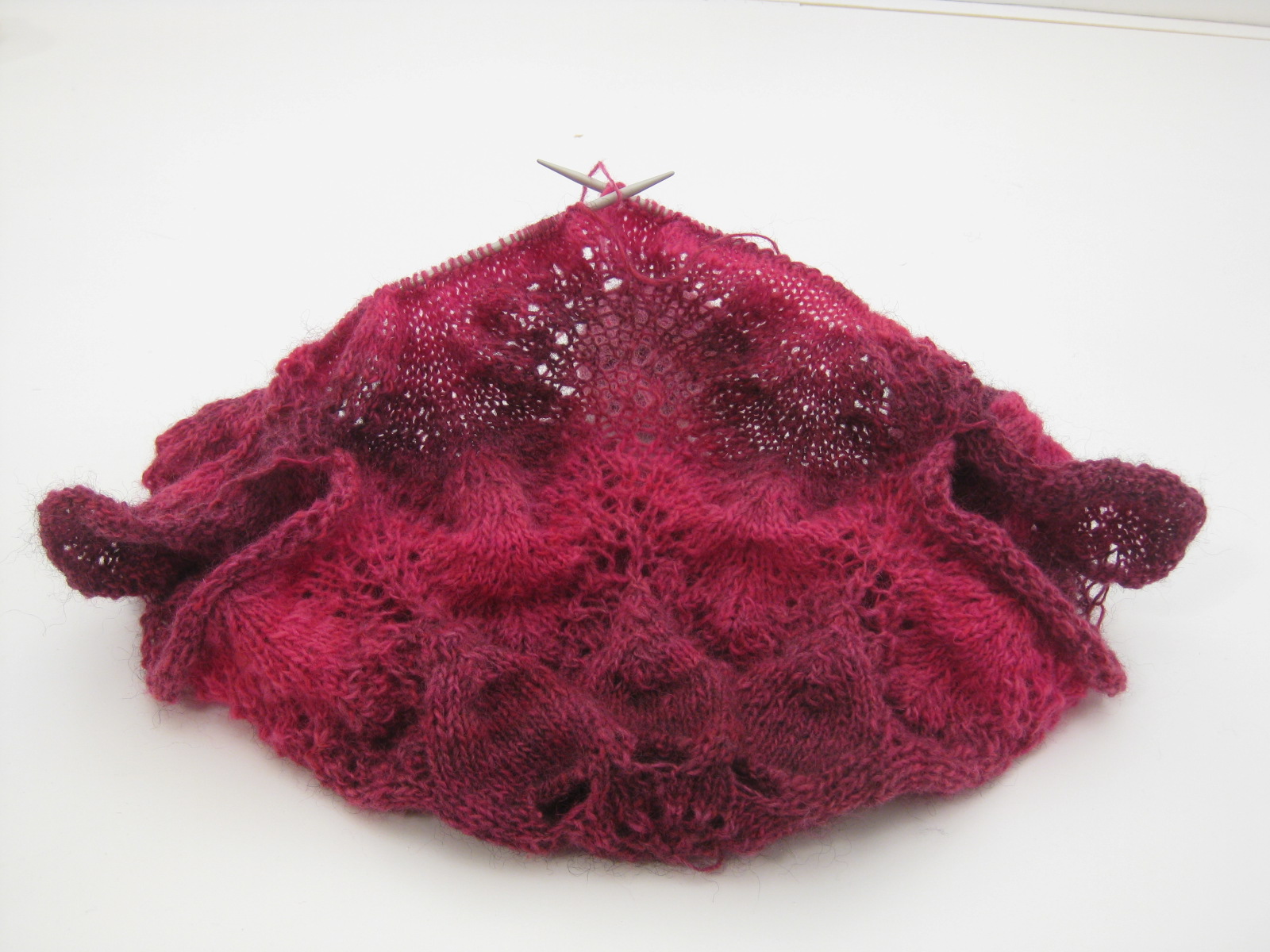 Det är tänkt att bli en kofta, men ibland tvivlar jag. Igår till exempel, upptäckte jag att jag stickat ena framstycket i nacken! Och så har jag haft svårt att förstå beskrivningen – så när framstycket väl kom på rätt plats blev det ändå inte bra. Bilden i beskrivningen ger ingen vägledning. Den är svart-vit och ganska mörk. Men skam den som ger sig. Jag har gjort upprepade upprepningar så nu tror jag att framstycket både sitter på rätt plats och har rätt form. Hade tänkt ge mig på ärmarna ikväll. I morse såg jag att jag trots mitt jättelager av stickor inte hade några 5,5 mm:s rundstickor vilket behövs till ärmarna. Men när vi var och handlade mat upptäckte jag att de hade både 5,5 mm:s utbytbara stickor och kabel i rätt läng på ICA Maxi så nu SKA koftjäkeln bli klar! (Snart … 😉 )