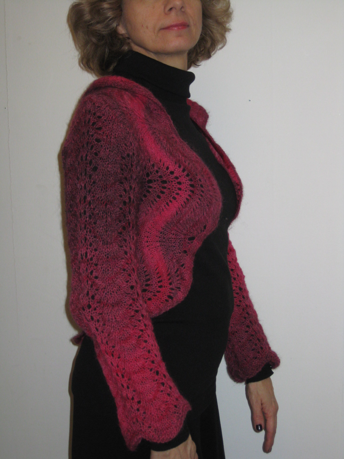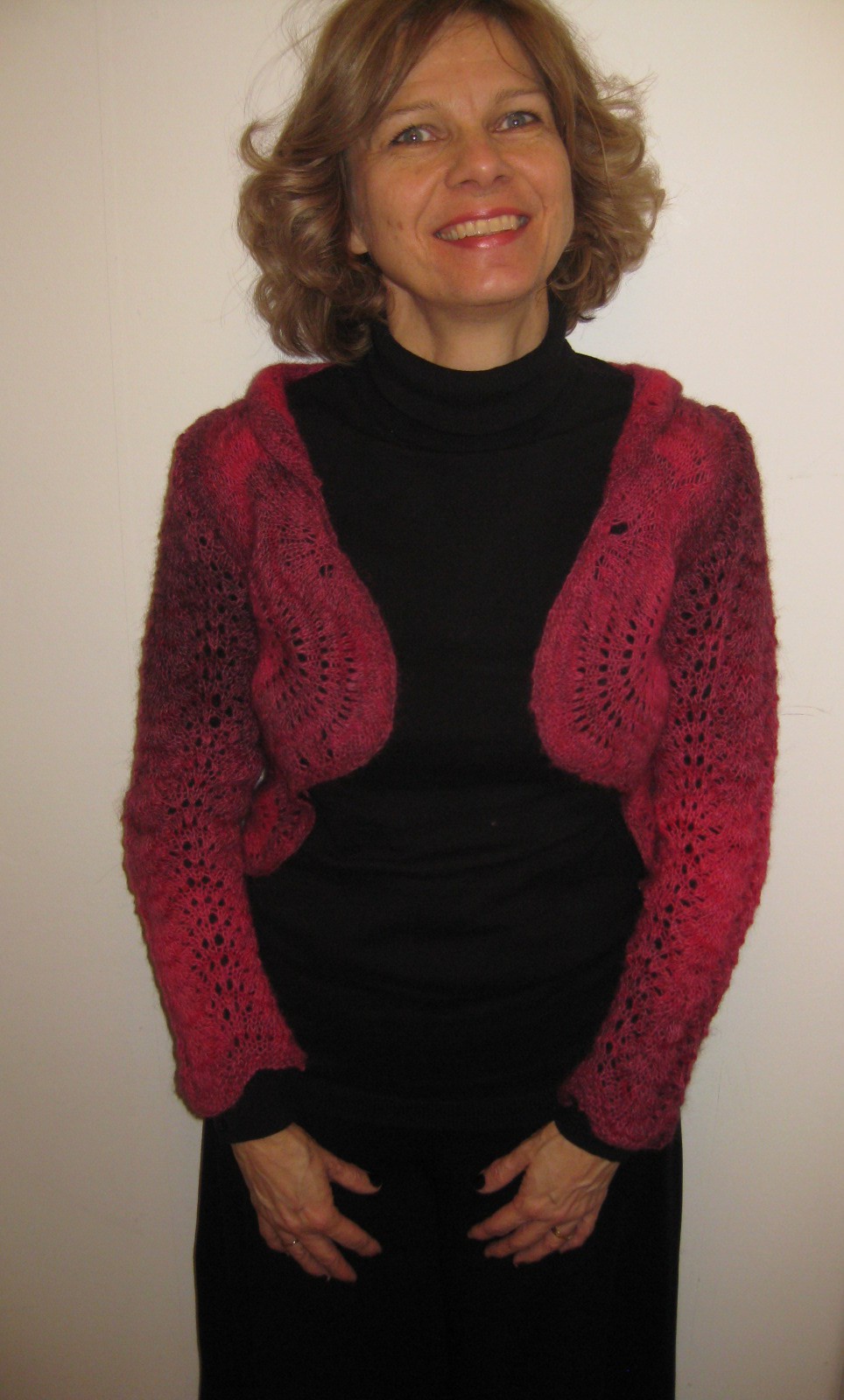 Och framsidan blev ju bra till sist. Puh! Det här är ju inte precis en kofta att ha på jobbet. Men jag har faktiskt använt den redan! För idag var Uffe och jag och tittade på Falkenbergsrevyn med våra grannar, och går man på revy vill man ju gärna klä sig lite fin. Och jag kände mig fin i min kof.. bolero.