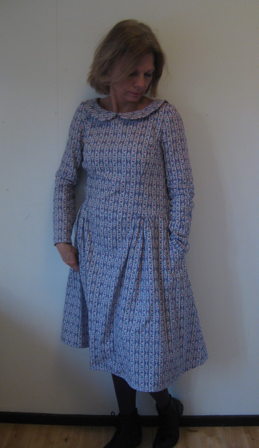 Och nu när jag tittar på bilden ser jag att jag ändå inte fått mönstren att passa ihop från midjan och neråt. Hm. Det är bara att hålla på och hålla på. För varje plagg man syr kommer man förhoppningsvis ihåg de erfarenheter man gjorde när man sydde föregående plagg. Om man inte väntar för länge med nästa plagg, det vill säga … ;).
