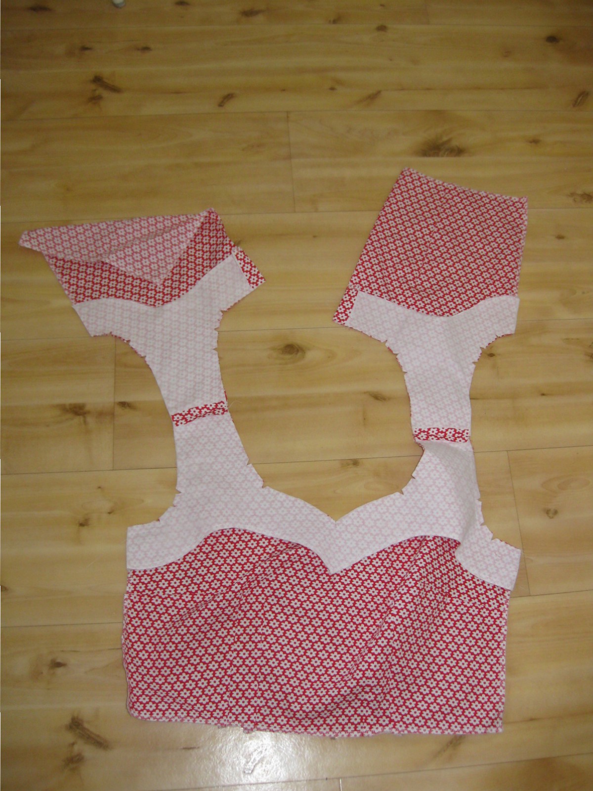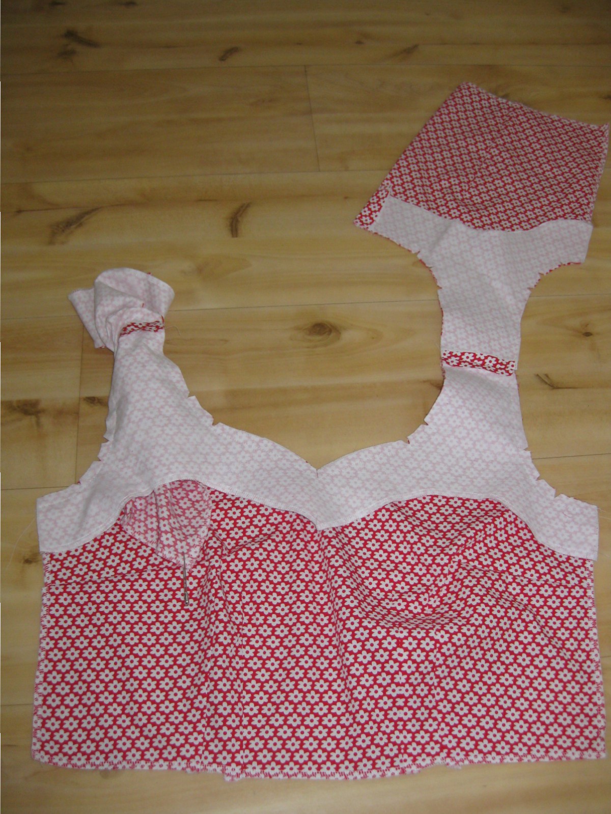 Just nu är det nästan höstlikt väder här – och så sitter jag och syr på en ärmlös sommarklänning. Prövar ett mönster i Gertie´s New Book for Better Sewing, men är inte helt nöjd med passformen ännu. Jag syr in och jag syr ut, i sidorna och vid inprovningarna. Jag funderade till och med på att ta in lite vid axelsömmarna. Men då hade jag fått sprätta loss dragkedjan för att kunna dela på liv och klänning, för att sedan kunna vända ut infodringarna och … ja, ni hör ju själva: det blir ingen ändring av axelsömmarna på den här klänningen! Har just fått till den dolda dragkedjan hyfsat, efter att ha sprättat loss halva och sedan tråcklat innan jag sydde om den. Blotta tanken på att göra om det igen ger mig rysningar. Kanske kunde livet ha varit lite kortare också. Jag är ju inte så lång. Men då är vi där igen, att sy om dragkedjan lockar inte alls. Här är en bildserie på hur jag sydde infodringarna. Jag låter bilderna tala för sig själva. Hör av dig om du undrar över något.