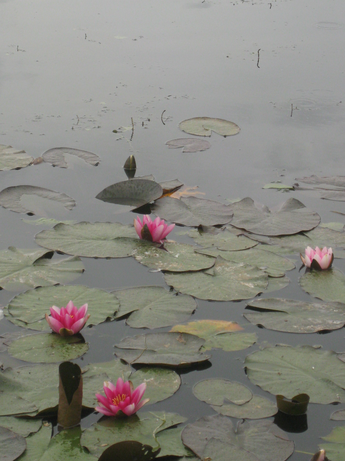 Det växte underbart vackra rosa näckrosor invid strandkanten.
