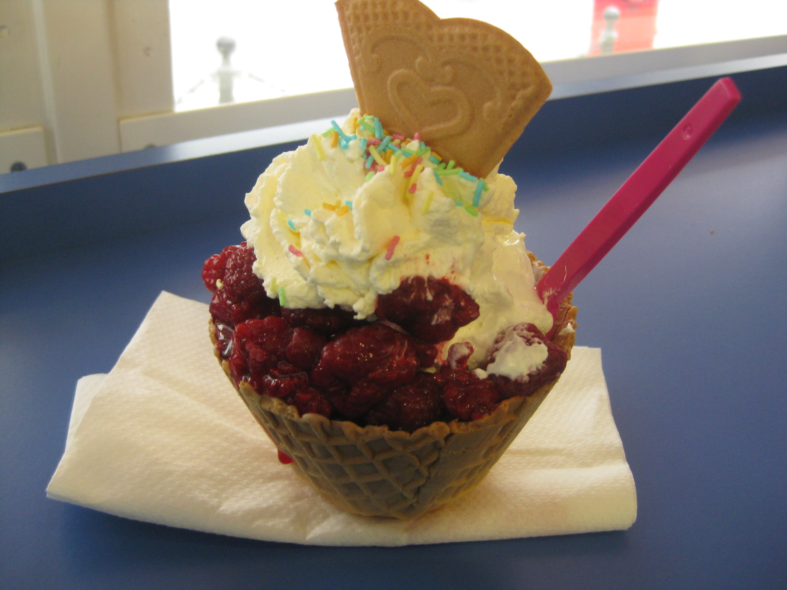 Innan vi åkte hem till Halmstad igen måste vi så klart äta Slagstaglass – den enda mjukglass jag äter. Det finns mängder av upplägg att välja mellan i menyn. Jag gillar snäckorna med mjukglass, vispgrädde och sylt. Den här gången blev det hallonsnäcka … mmm!