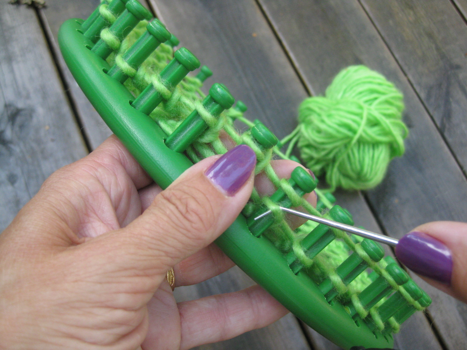 Senare i höst ska fyrorna jobba med arbetsområdet ”Något värmande”. Tanken är att de ska få fundera lite över vilket material som kan vara lämpligt för att det ska värma, och vilken teknik de helst vill jobba med.  De kan t.ex.  sy något av fleece, som  vantar eller mössa, eller så kan de påta – halsduk eller mössa. Tidigare har jag köpt riktigt tjockt garn till mössorna – för att de ska bli täta och fina. Men de grossister som jag handlar från säljer inte längre riktigt tjockt garn i glada färger.  Idag testade jag därför att påta en mössa med ett lite tunnare garn som funkar bra till halsdukar