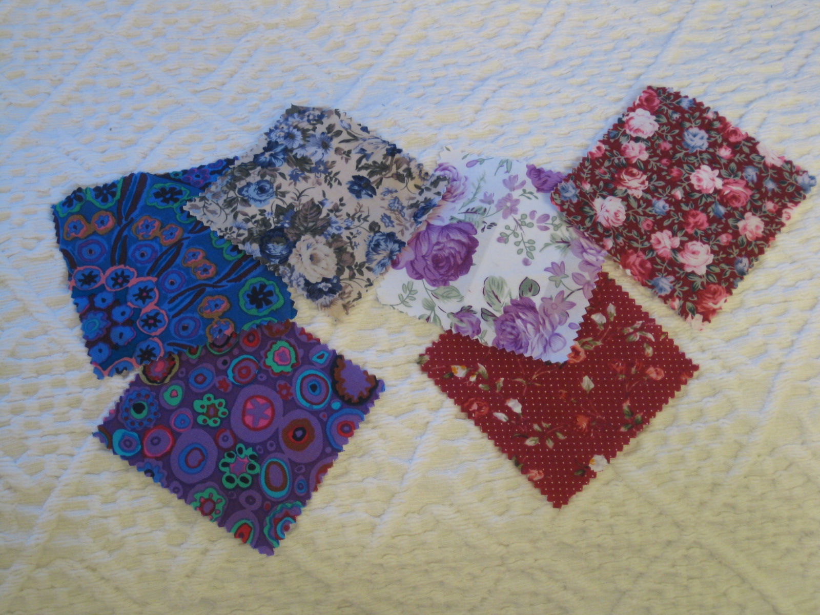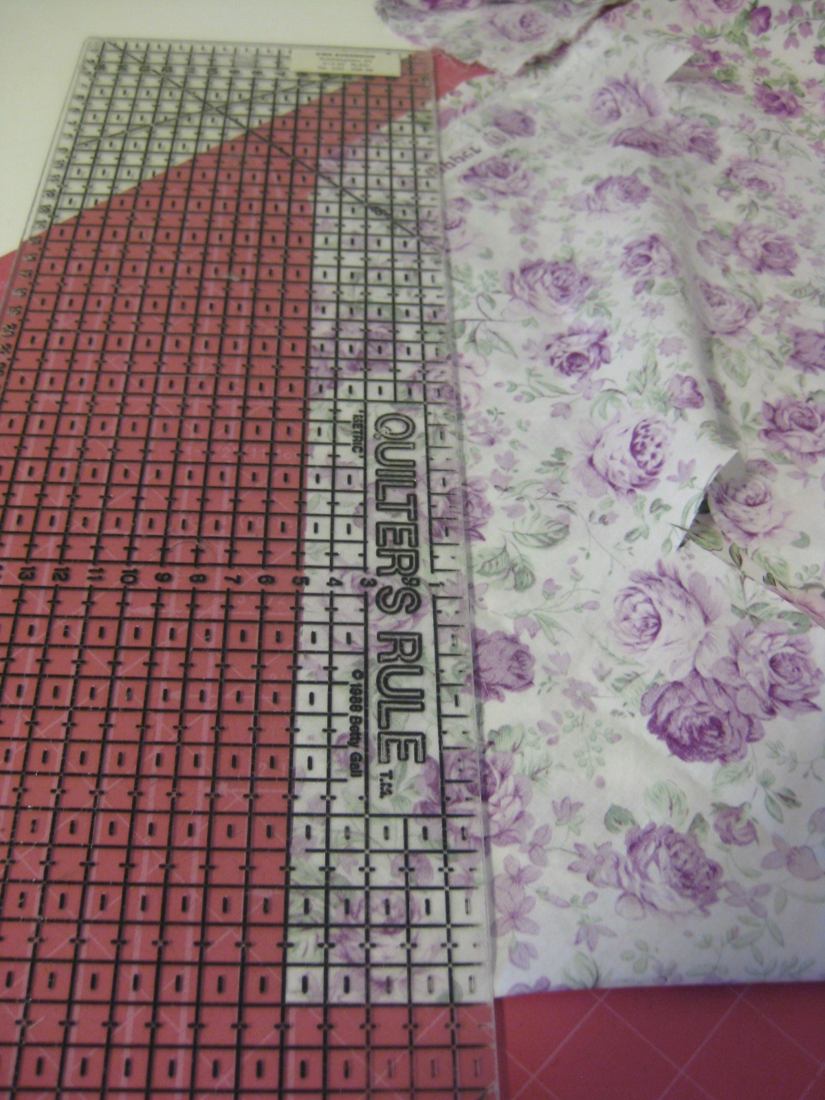 Jag skar till 5 cm breda snedremsor med rullkniv, skärlinjal och skärmatta. Det är användbara redskap inte bara när man syr lappteknik. De rationaliserar klädsömnaden också.