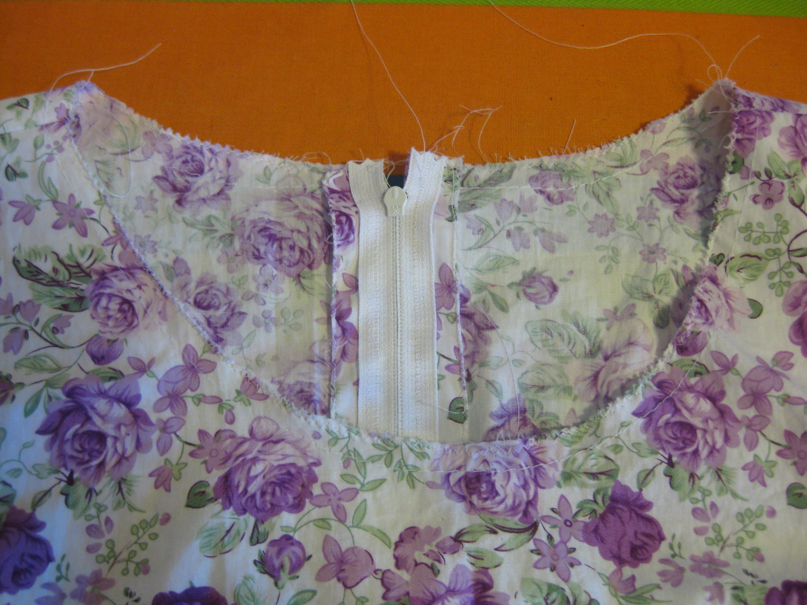 För att undvika att halskanten skulle töja sig sydde jag en raksöm med lite längre stygn än vanligt så fort jag klippt till fram- och bakstycke.