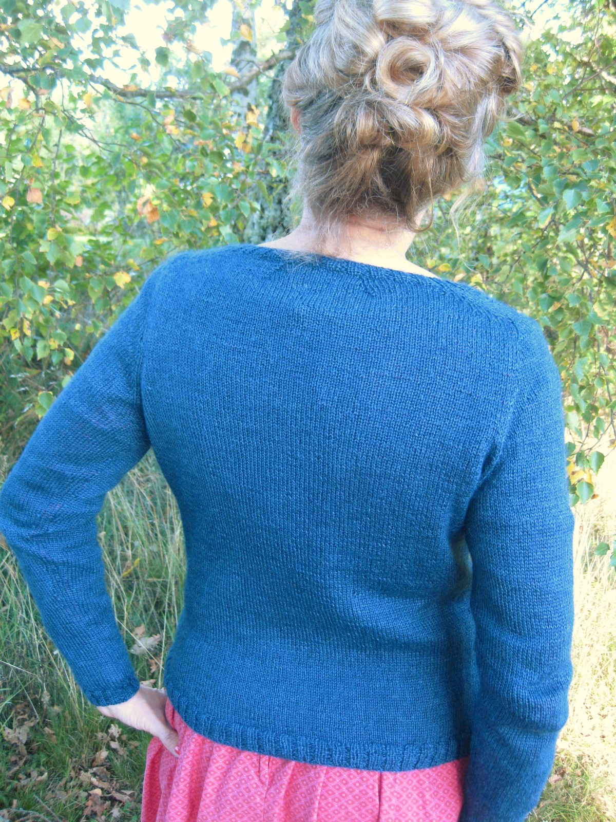 I nacken görs också minskningar som gör att koftan sluter fint till halsen även bak.