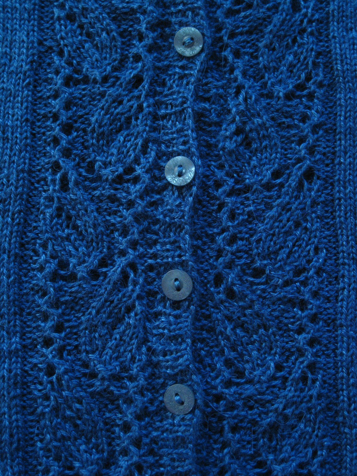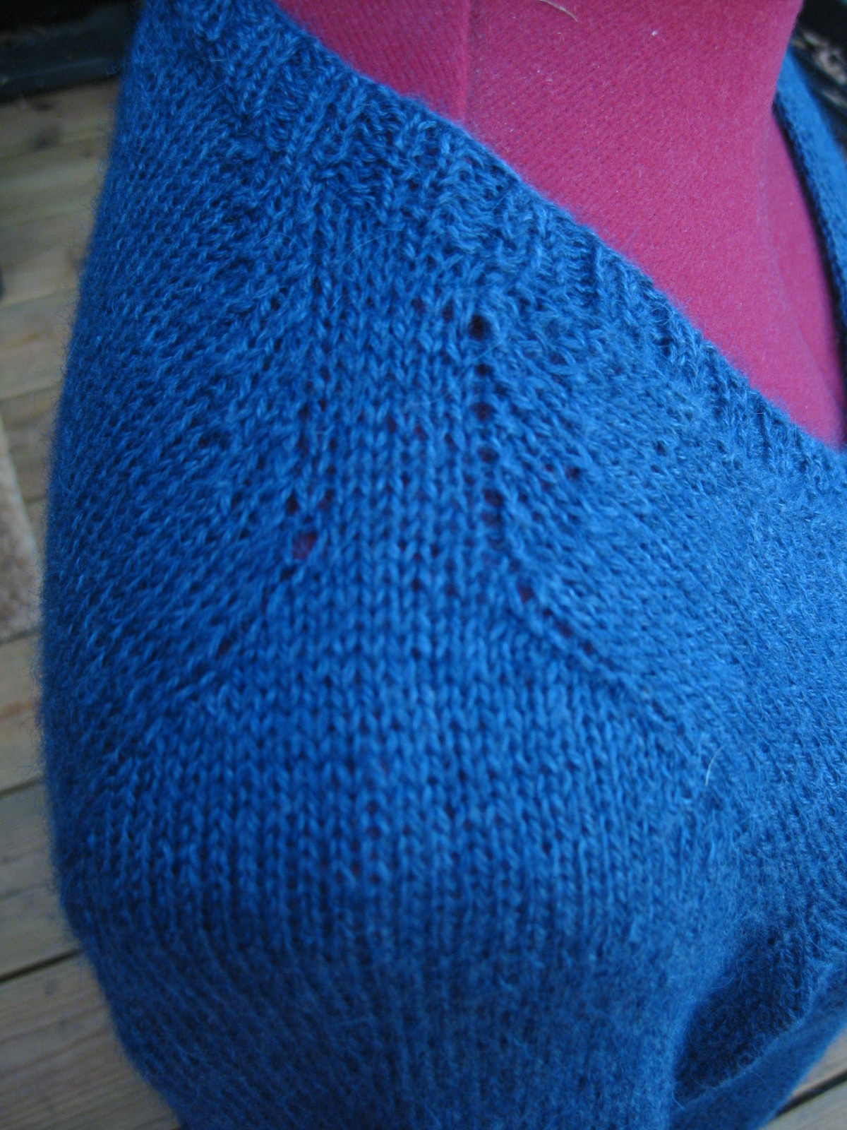IMG_3995 (2)är färdig. Äntligen har jag en ny blå kofta som ersättning för min gamla trotjänare som snart gjort sitt. Garnet, Sandnes Alpakka silke, ger en otroligt skön känsla som är svår att beskriva.  Att det innehåller 70% baby(?)alpacka och 30% silke säger väl en del.