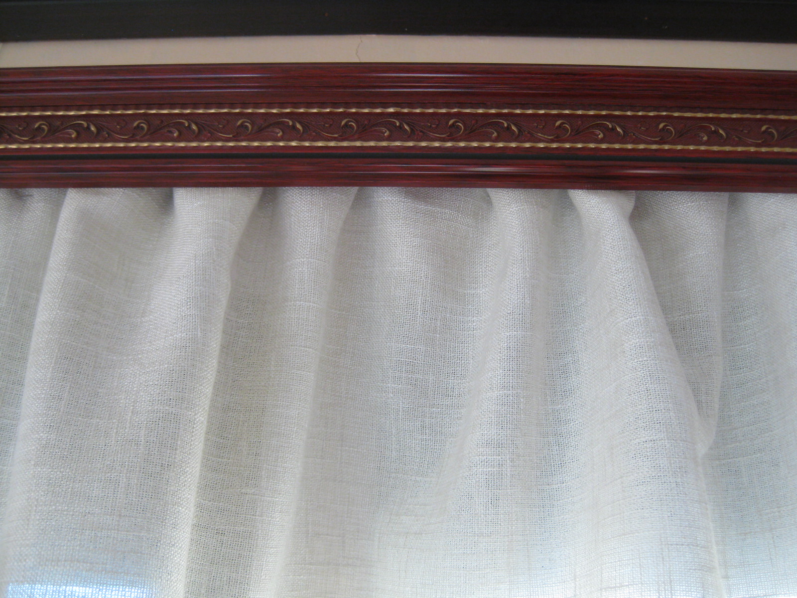 Det blev fint fall på gardinen med den nya stången efter allt ”strul” med dessa envisa öljetter.