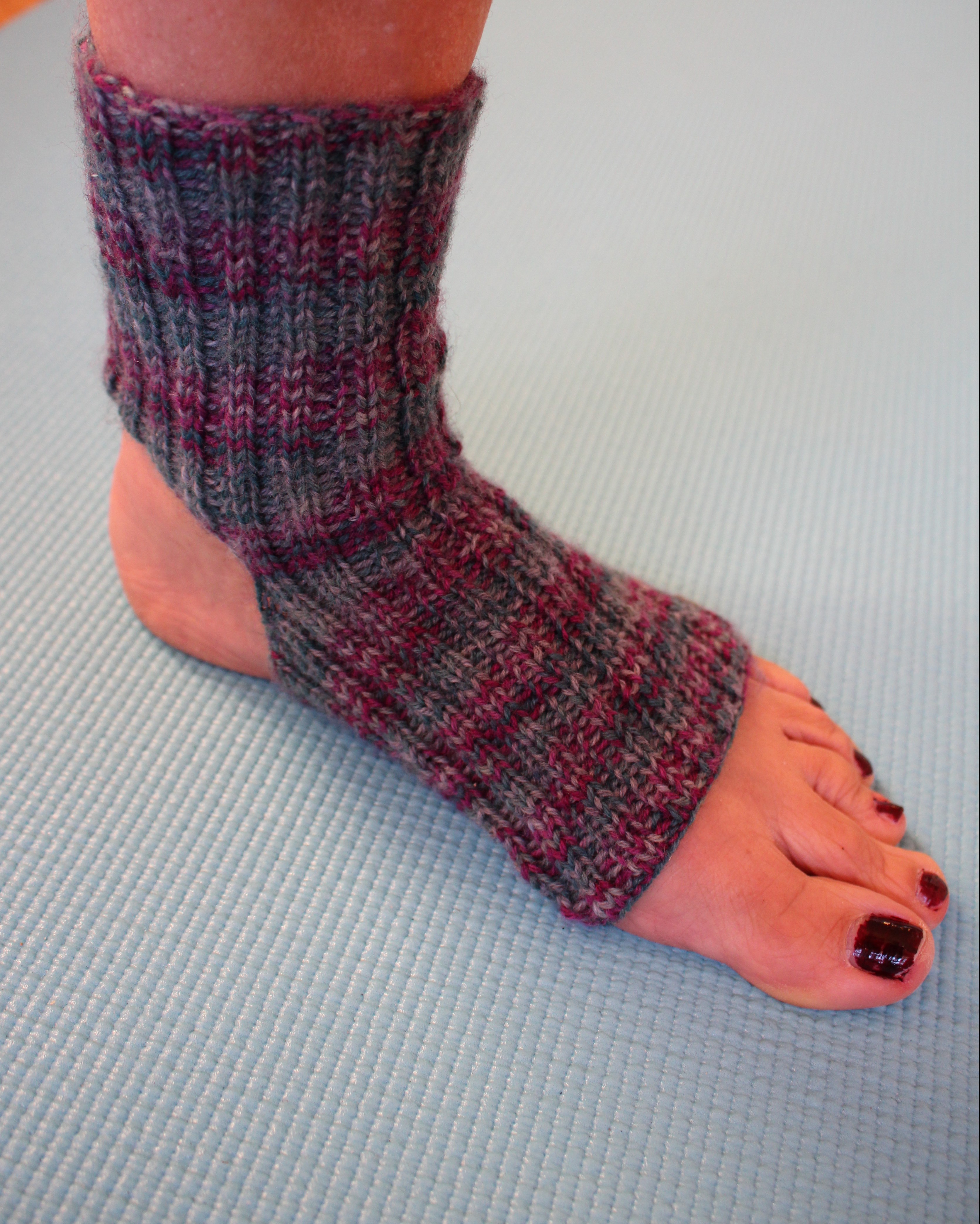 Det var ett tag sedan jag tränade yoga regelbundet, men nu ska det bli ändring på det! Jag var sugen på att testa en ny yoga-form, vinyasa yoga, där rörelserna utförs sammanhängande i en följd utan paus. Tyvärr blev kursen inte av, men jag hade turen att komma med i en mer klassisk yogakurs på hemorten där jag tränat tidigare. Det kan bli bra det med. Det är en jättemysig lokal (ett gammalt renoverat hönshus), inte så stor, så yogaklasserna blir heller inte så stora. Nu tänkte jag förbereda mig genom att sticka mig ett par yogasockor så jag slipper dra av och sätta på sockorna inför olika övningar utan kan behålla dem på och ändå få bra fotfäste … ;).