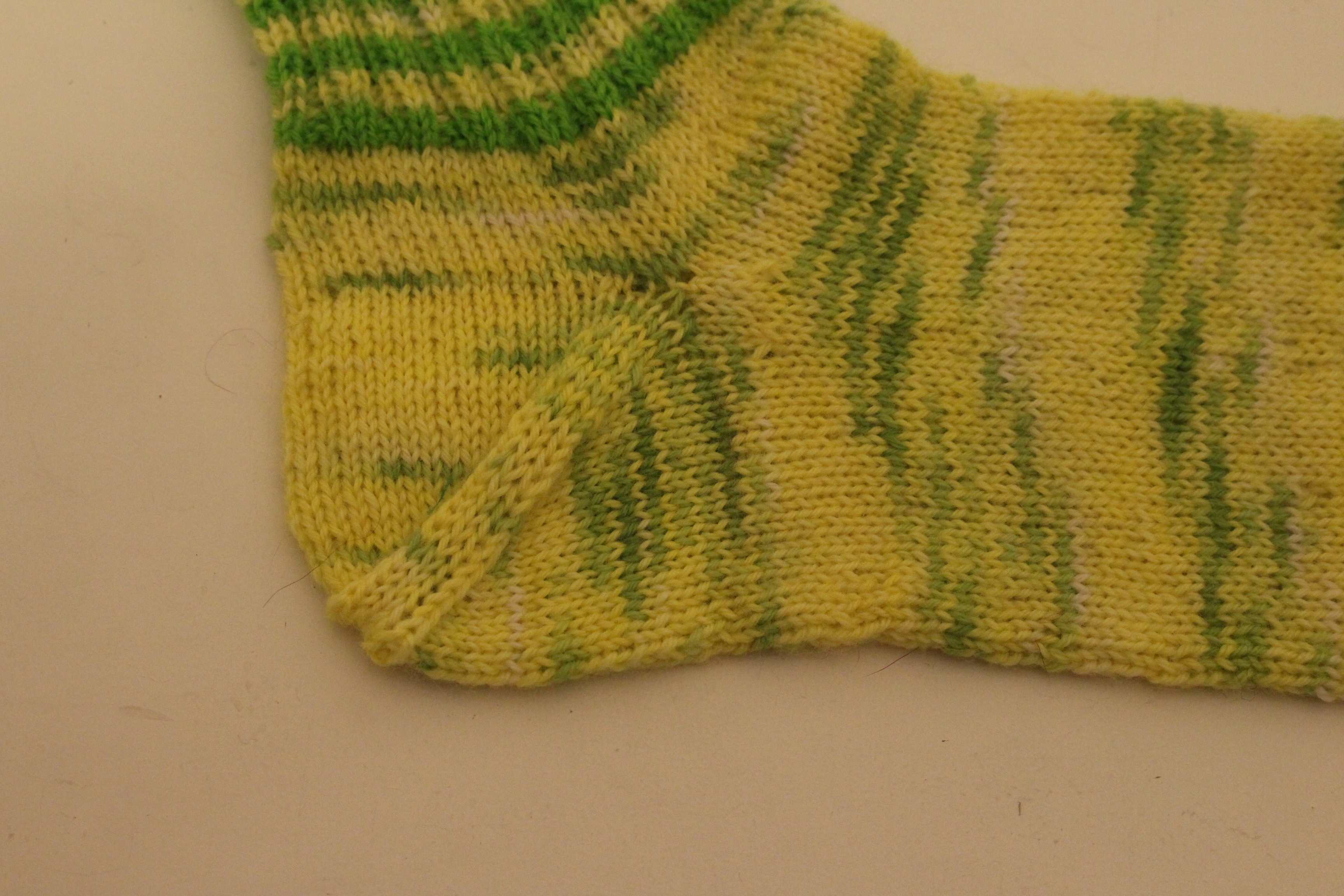 IMG_4644Här kommer en sock-variant som jag lärde mig när jag gick min textillärarutbildning. Det är hälen som är finessen.IMG_4646