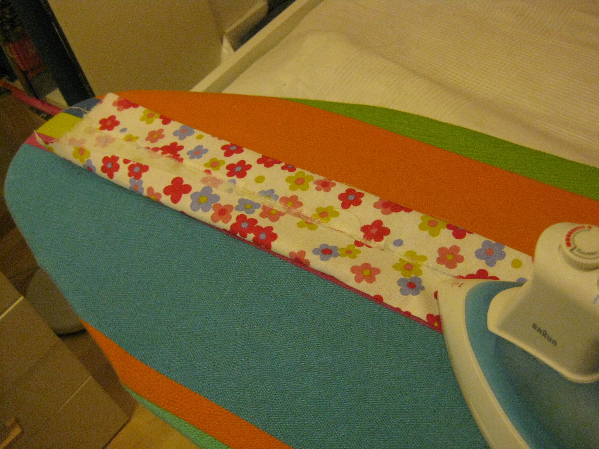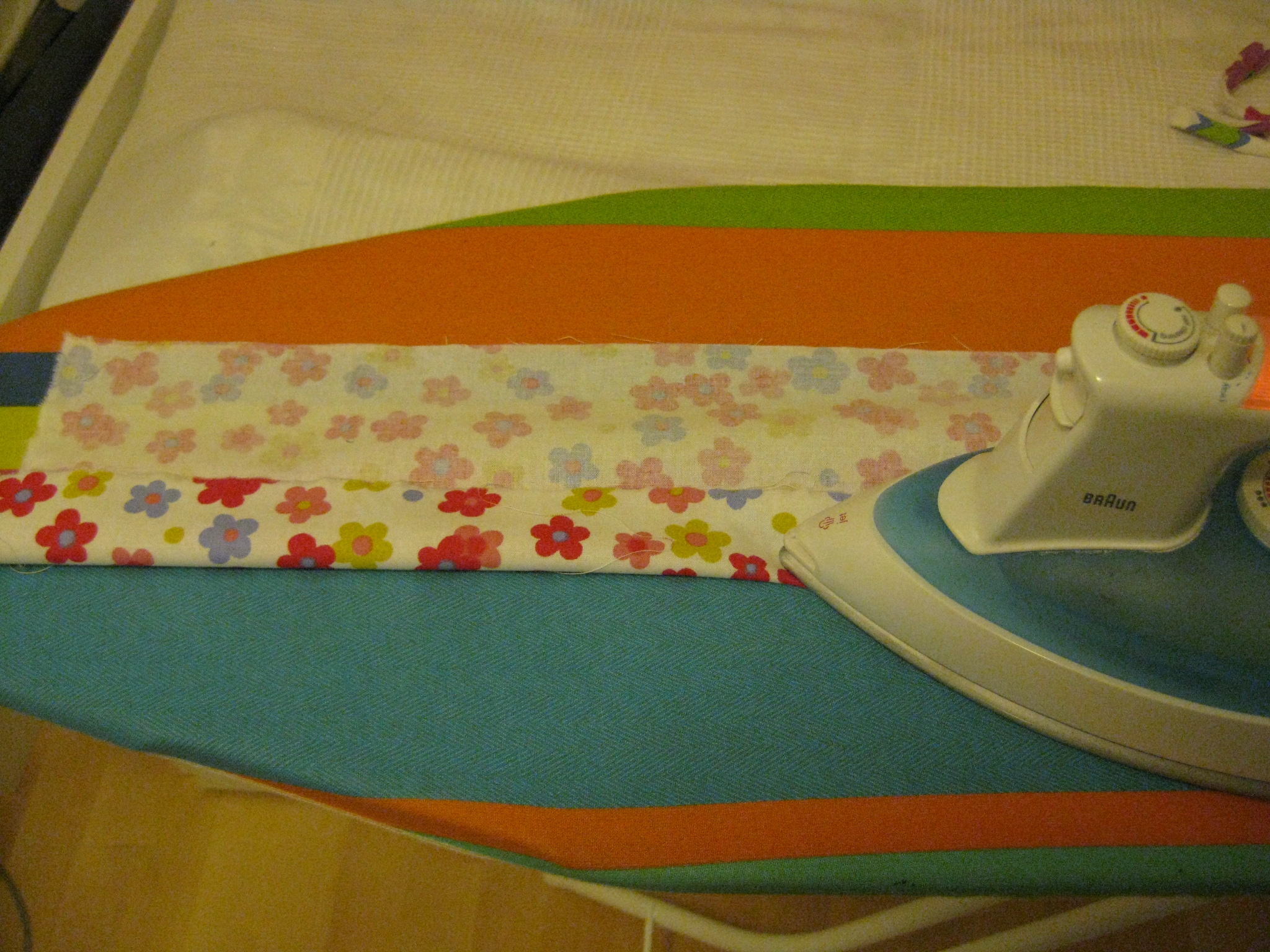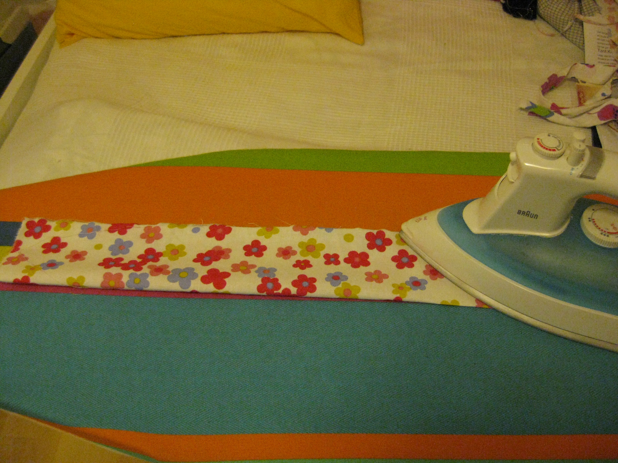 Vik dem på mitten till 8×50 cm – rätsidan utåt – och stryk på vikningen.IMG_0667