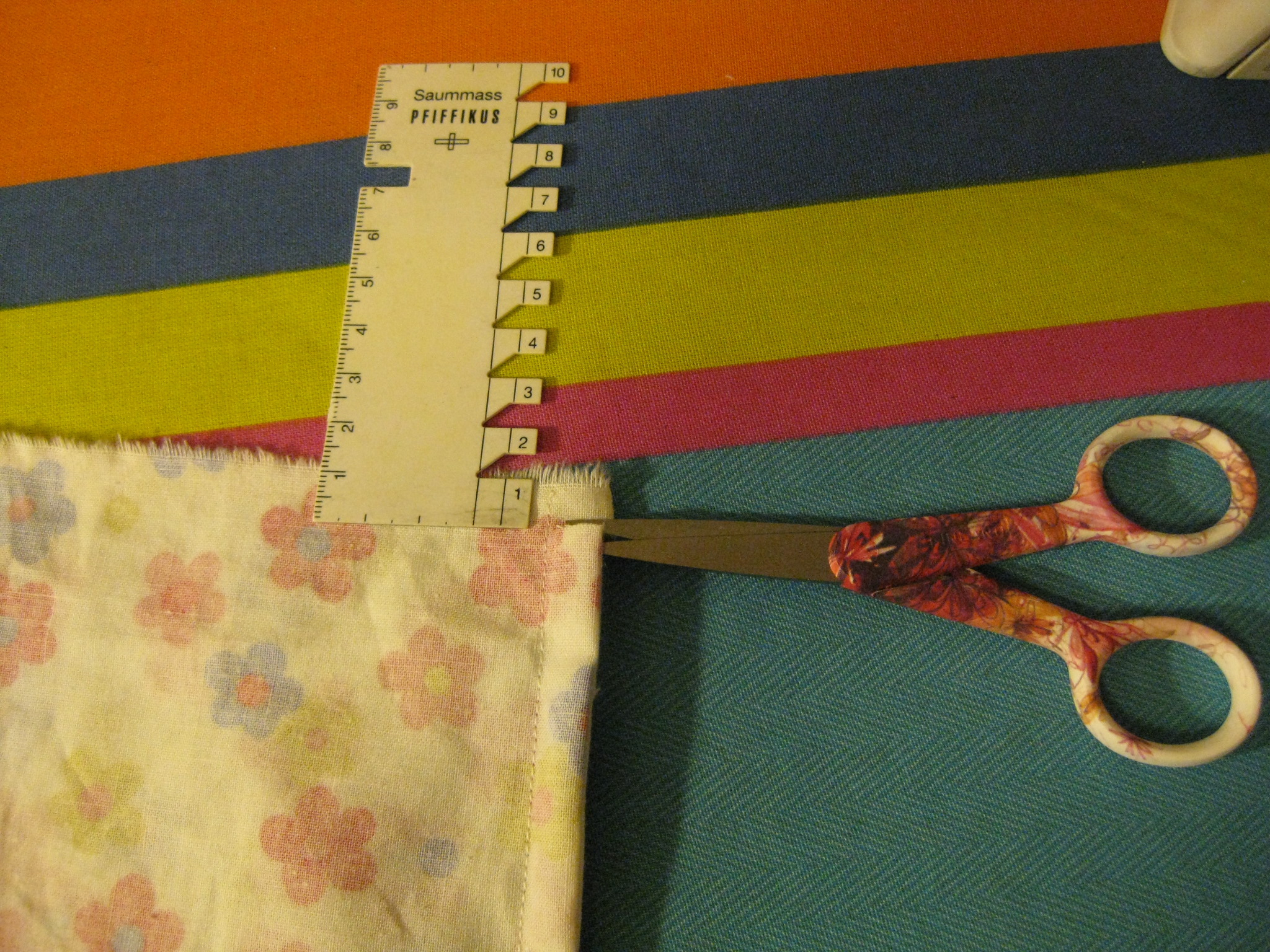 Tips: har du rivit till din tygbit, klipp bort ”fransarna” innan du vänder ut avigsidan, annars kan de sticka ut genom nästa söm och synas på utsidan av kassen.