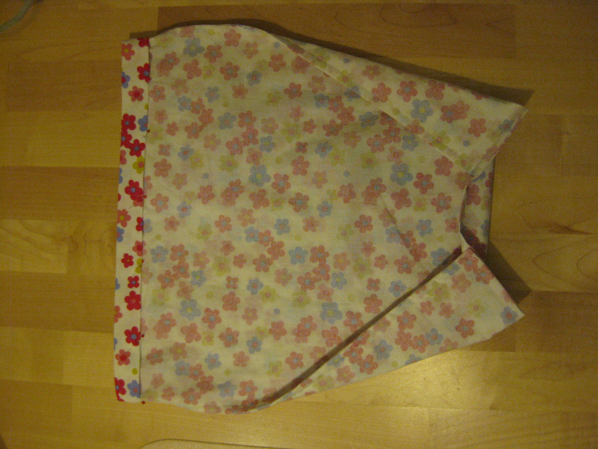 Vik in ovankanten 1 cm mot avigsidan, runt om. Stryk på vikningen. Blir det tjockt att vika vid sidsömmarna kan man klippa jack i sömsmånerna och vika dem åt var sitt håll, se bilderna …IMG_0675