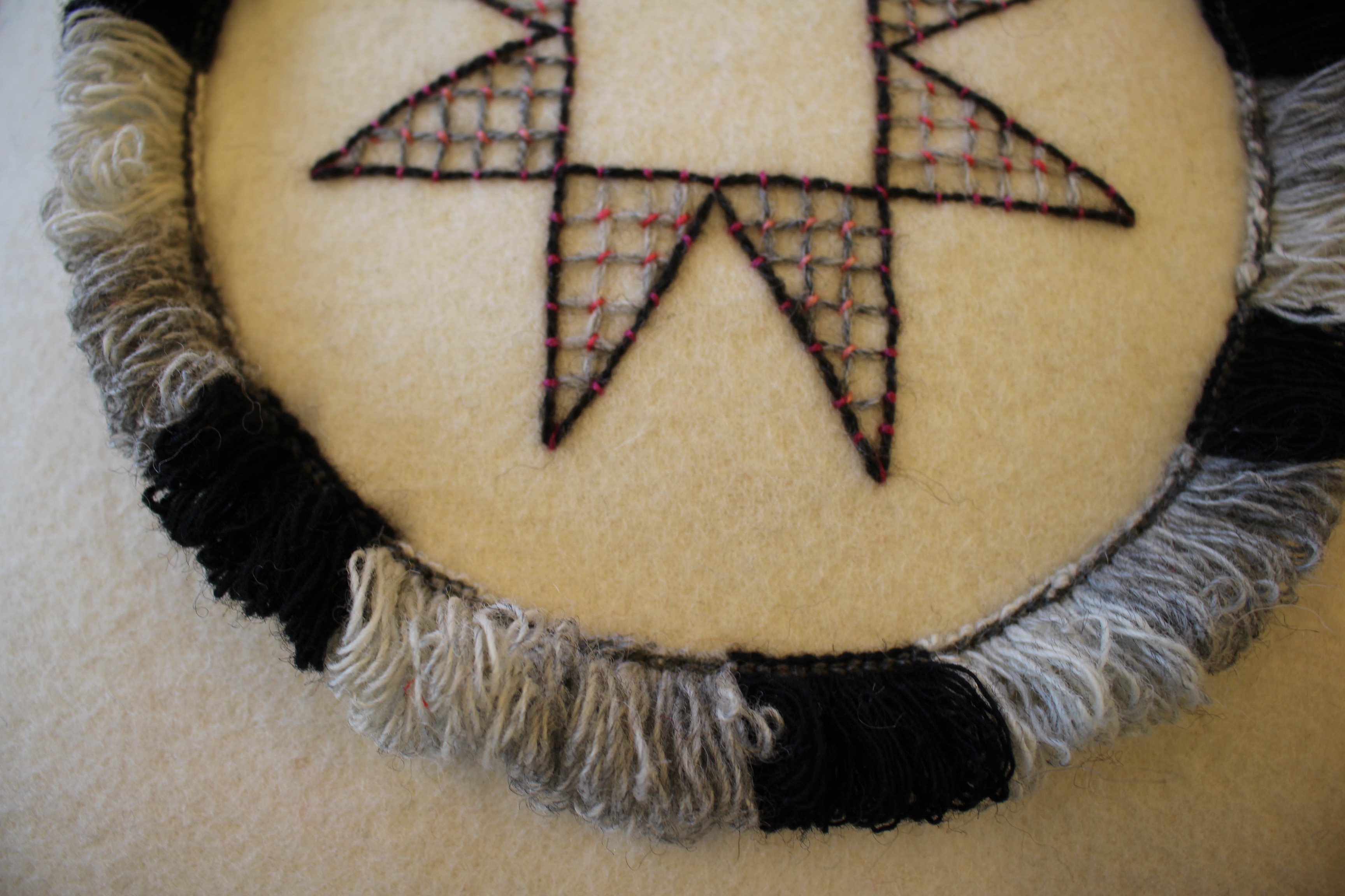 På ”show-and-tell” visade Klara, en av mina kurskamrater, hur hon syr fast speglar med hjälp av pärlor: