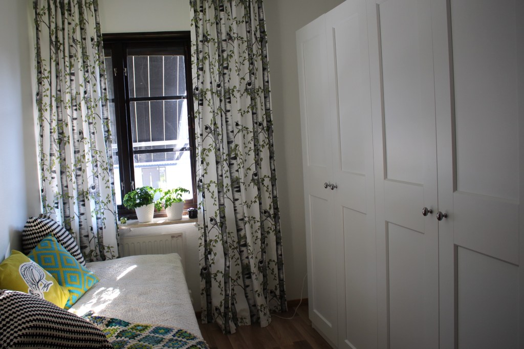 Jag skrev inte så mycket om garderoberna då för ett år sedan. De är köpta på Ikea. Jag använde deras planeringsverktyg och planerade inredningen i lugn och ro hemma. Det var väldigt bra – man fick exempelvis en varning om man försökte planera in ett hyllplan där gångjärnen sitter, och man kunde se hur mycket plats som behövdes om man tänkte hänga upp klänningar respektive långbyxor.