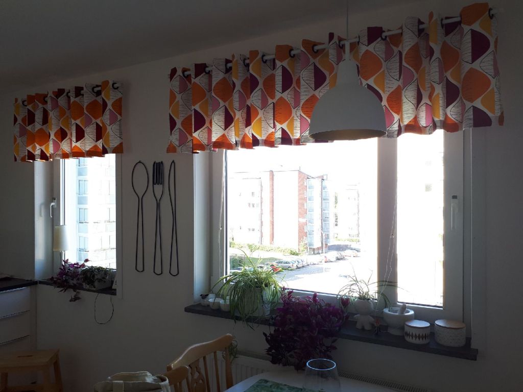My har inte haft några köksgardiner sedan hon flyttat till sin nya lägenhet. Nu tyckte hon det var dags, så i september sydde jag de här till henne.