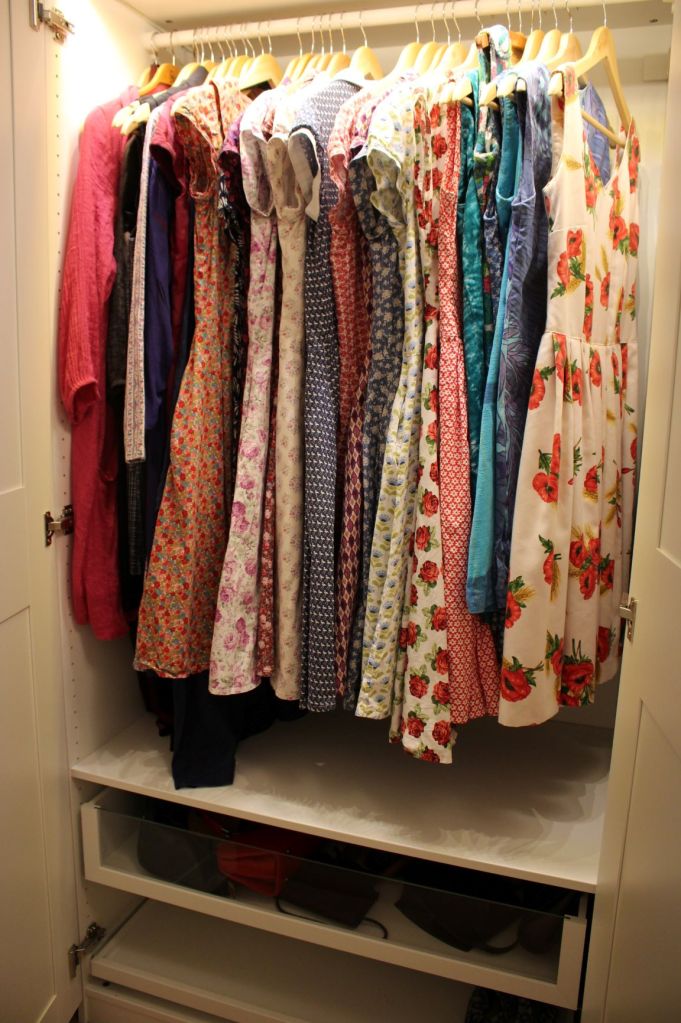 I februari fick mina klänningar ett nytt hem. Uffe och jag hjälptes åt att måla om väggarna och lägga nytt golv i Idas rum. Med sex garderober blev det nästan som ett dressingroom – eller i alla fall ett dress-in-room.