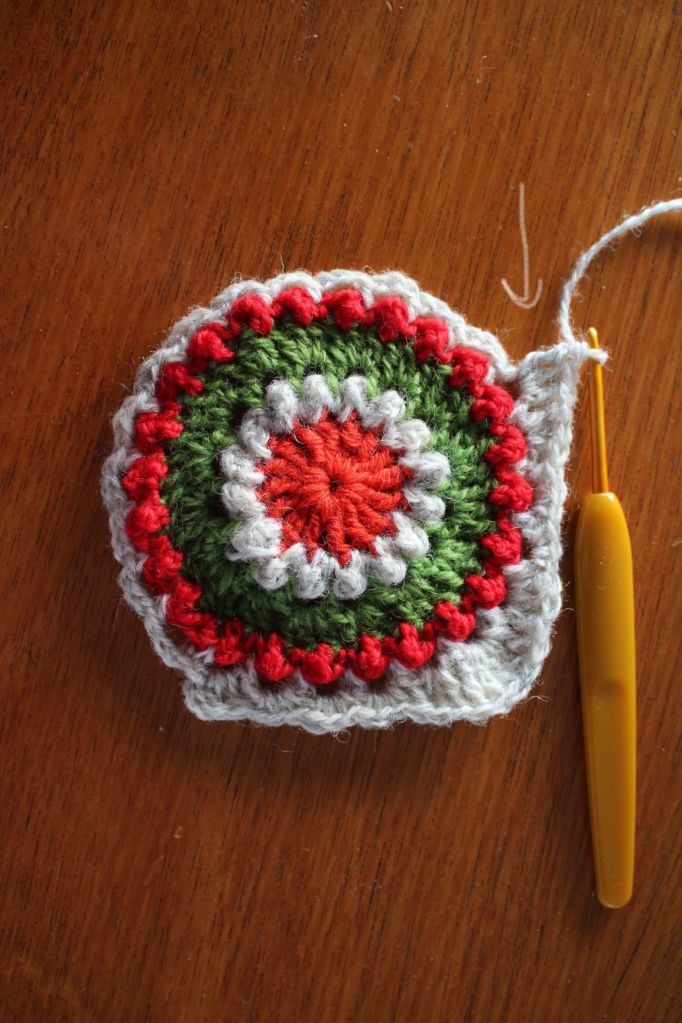 Visst är det häftigt att en rund virkning kan bli fyrkantig? En stund efter jag fotograferat upptäckte jag att jag virkat en stolpgrupp för mycket vid pilen.