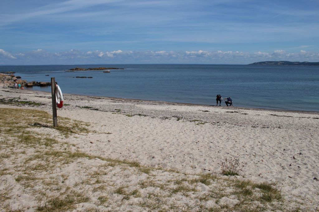 Vi hade inte tänkt på att ta med badkläder, men ville ändå känna på vattnet. Det var kristallklart – och kallt.