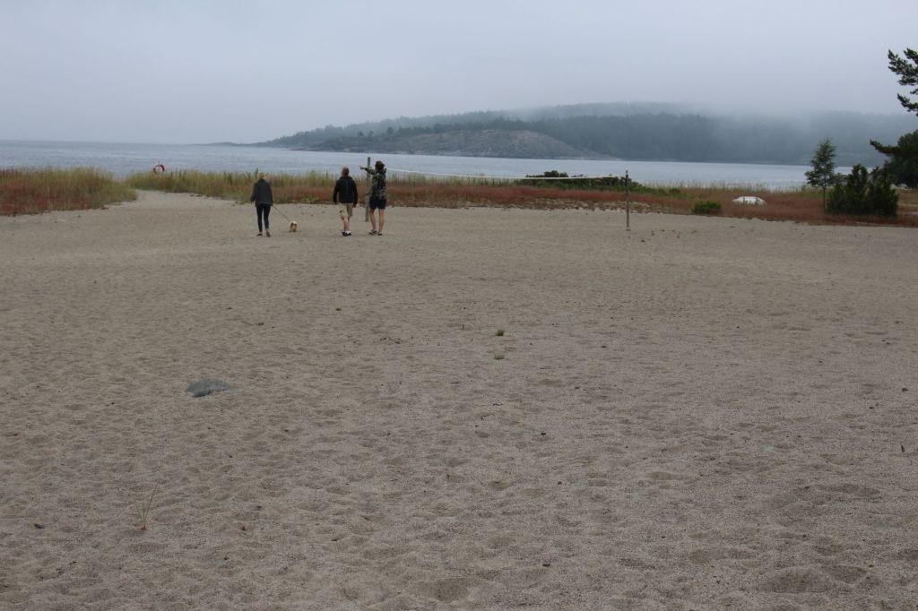 Första eftermiddagen svepte en trolsk dimma över ön. Här är vi på väg ner till Sågsand, en fin badstrand, och därifrån gick vi till
