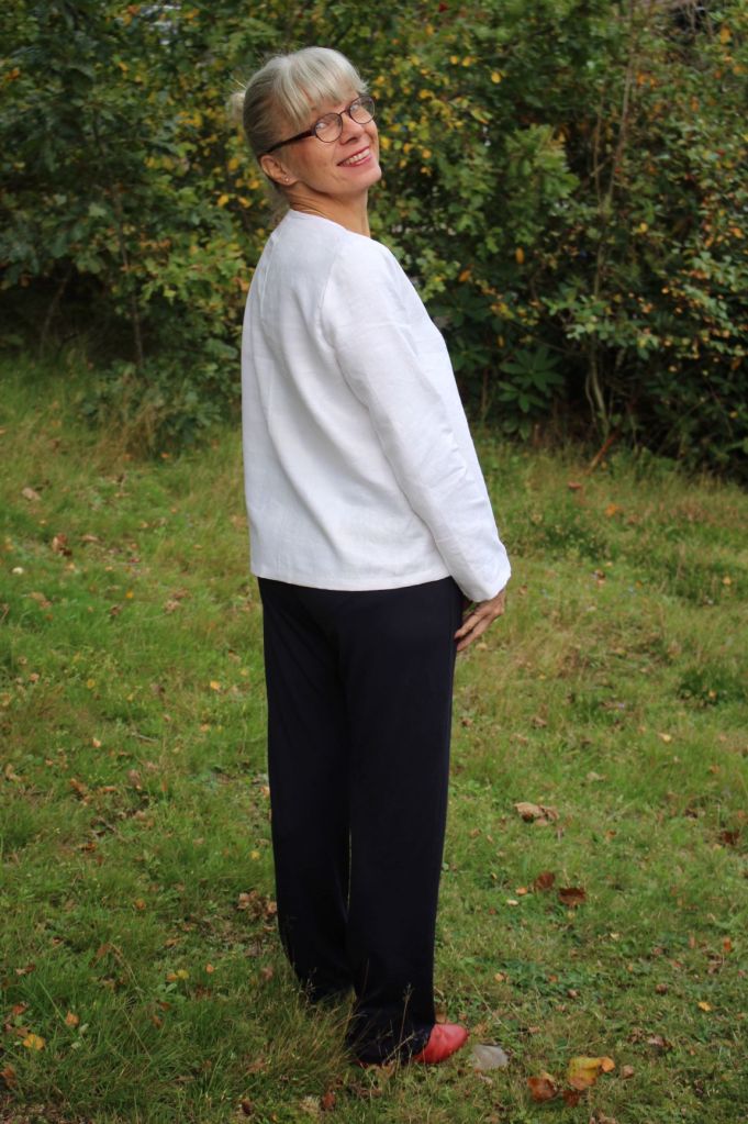 Jag är tycker att modellen är fin i sig: halsringningen är snygg och det är otroligt att man kan få till en så fin passform utan insnitt i ett vävt tyg, men jag kan tänka mig att testa lite varianter, t.ex. förlänga ryggen. Det skulle också vara roligt att prova att sy den i ett tyg med mjukare fall.