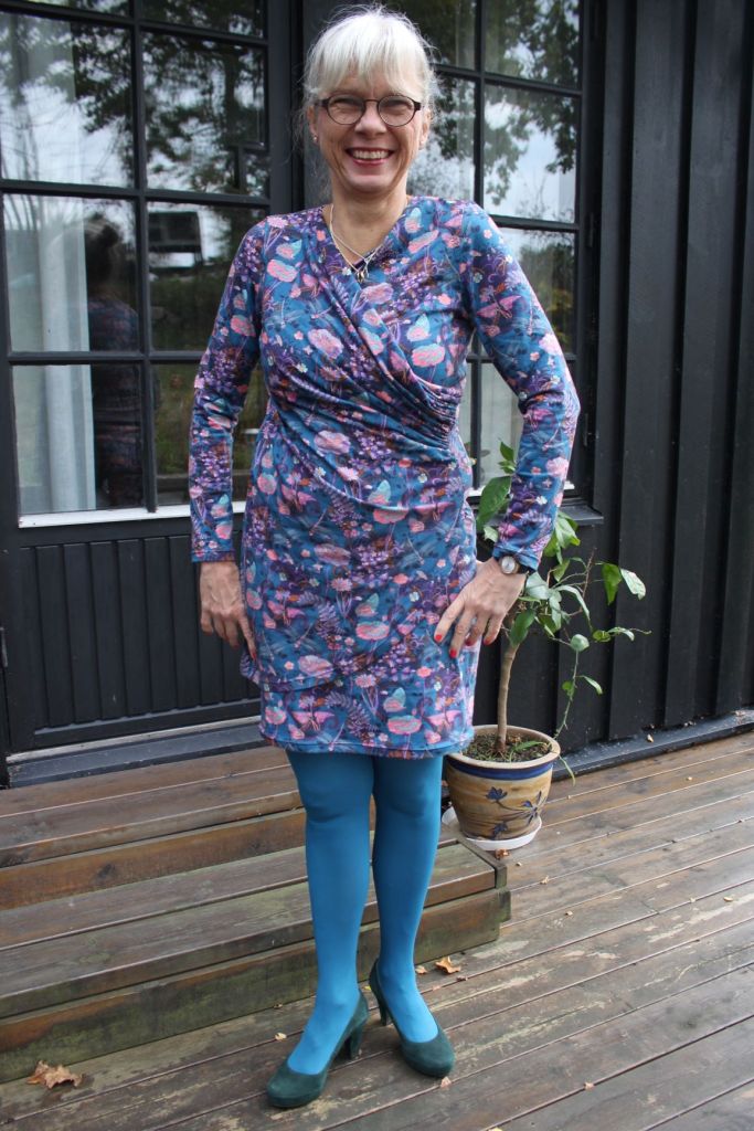 Den här klänningen sydde jag på ett sy-LAN jag var med på förra helgen. Modellen heter Lady, kommer från Svenska mönster. Jag har sytt två tidigare. Nummer två gjorde jag lite större än den första jag sydde. När jag skulle sy den här bestämde jag mig för att återgå till orginalstorleken (38). Tyget är ju töjbart :). Jag har inte trivts lika bra i den större klänningen, tror att det beror på att den inte sitter lika tight.