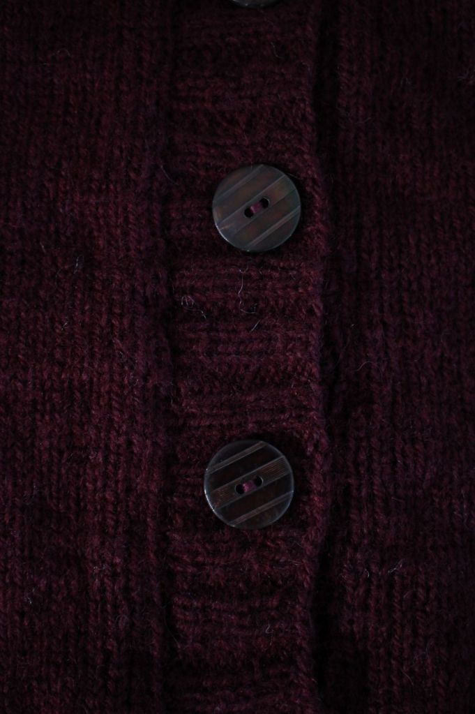 Knapparna är riktiga pärlemoknappar, dyra som skam fast Nina i sybehörsaffären i stan prutade med sig själv :). Jag tror att knapparna nästan kostade lika mycket som garnet, men eftersom de passar så bra så fick det svida i börsen. Tyvärr visar det sig nu att de är ömtåliga. En gick sönder redan innan jag börjat använda koftan, råkade slå i en bordskant och så gick halva baksidan av. Tur det finns Karlssons klister!