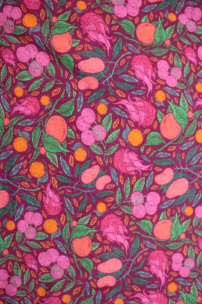 Drakfrukt heter det, och jag tror att det kanske var de orangea inslagen som kändes lite skrikiga så det är därför det fått stanna i tygskåpet. Men nu när jag ser det färdiga resultatet så blev det ju inte så tokigt …