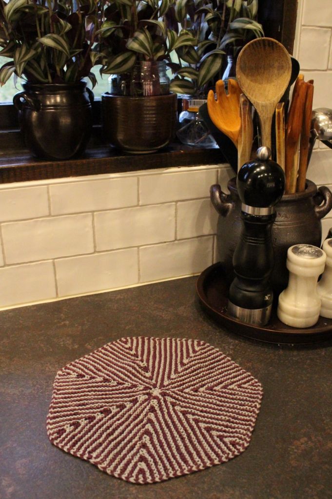 Jag fattar egentligen inte varför jag inte stickade klart grytlappen direkt, för den var rolig att sticka. Modellen heter Heptagonal potholder och mönstret är gratis på Ravelry.