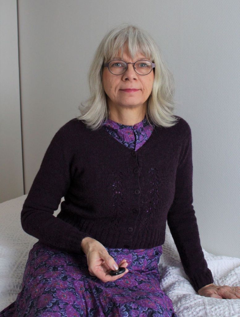Det andra projektet som blev klart i nyårshelgen var koftan Sjömanshustrun. Nu när jag skulle fotografera den var det dåligt ljus så jag fick ta rätt många bilder i olika rum och med olika belysning för att få till en hyfsad bild, därav den något spända minen :). Och självutlösaren kom visst med – det bjuder jag på.