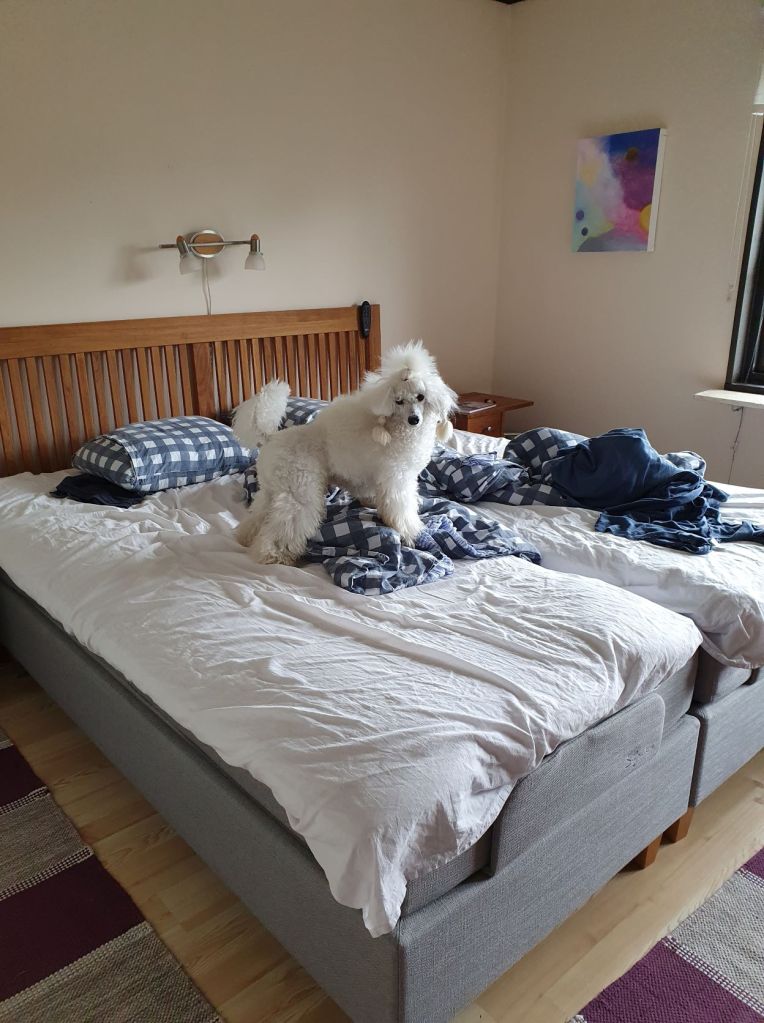 Fendi får INTE vara i våra sängar. Det här kom han på var ett bra sätt att få lite uppmärksamhet på.